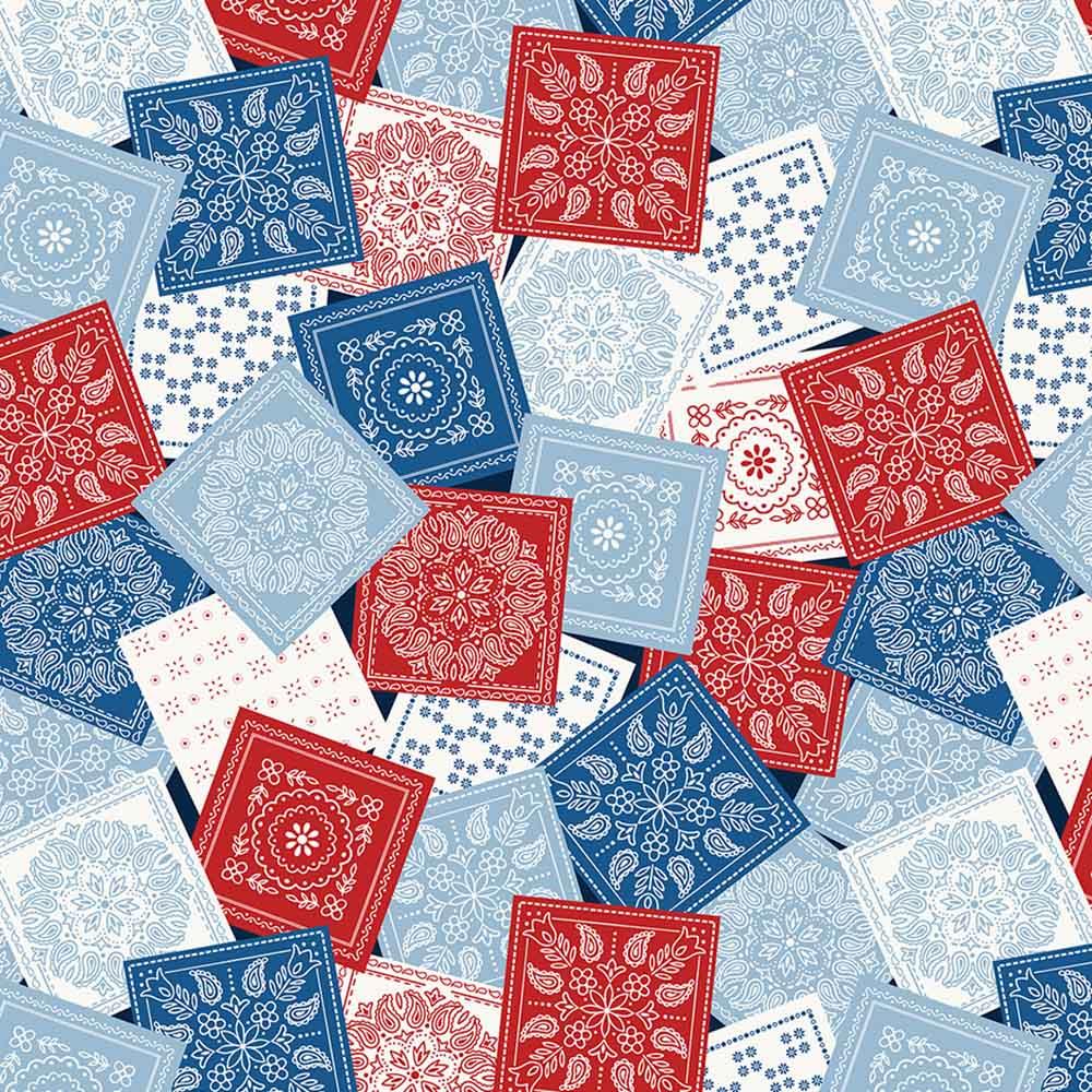 Benartex Fabrics - Lil' Buckaroos - Kanvas Studio - Bandana Squares - Red/Blue - Yardage