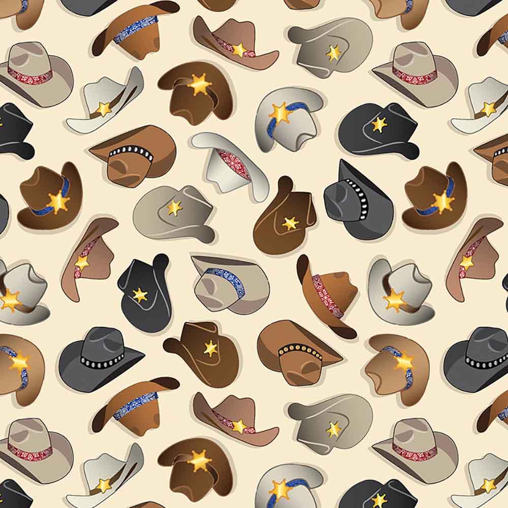Benartex Fabrics - Lil' Buckaroos - Kanvas Studio - Cowboy Hats - Cream - Yardage