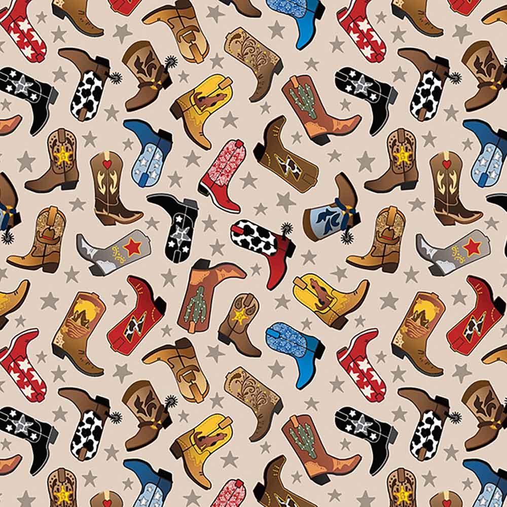 Benartex Fabrics - Lil' Buckaroos - Kanvas Studio - Lil' Western Boots - Tan - Yardage