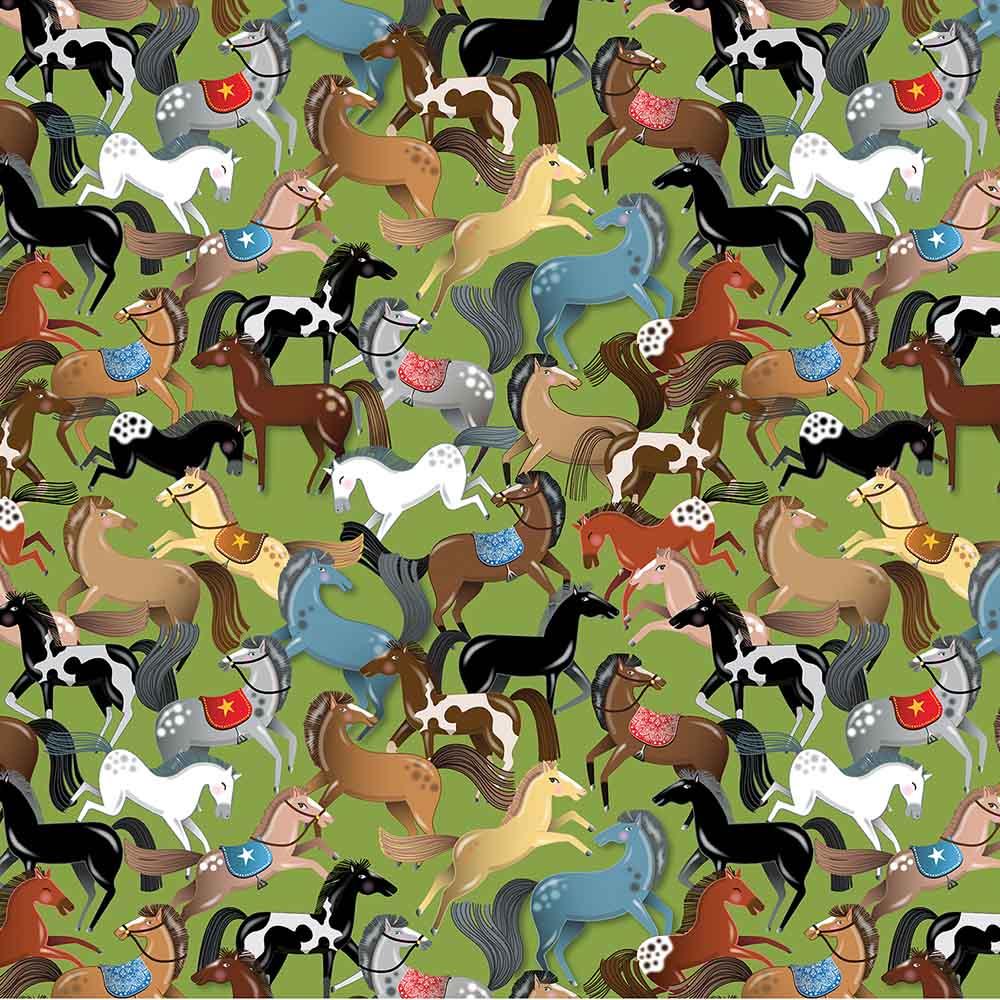 Benartex Fabrics - Lil' Buckaroos - Kanvas Studio - Wild Horses - Green - Yardage