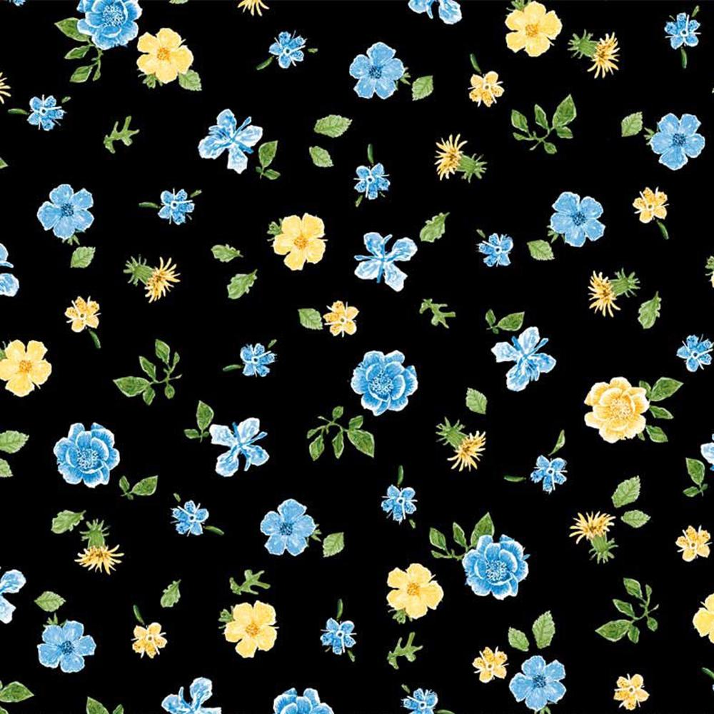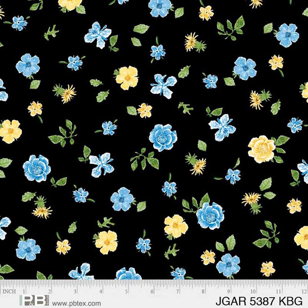 P&B Textiles - Jona's Garden by Jon Van Zyle - Mini Tossed Flowers - Black/Blue/Green - Yardage