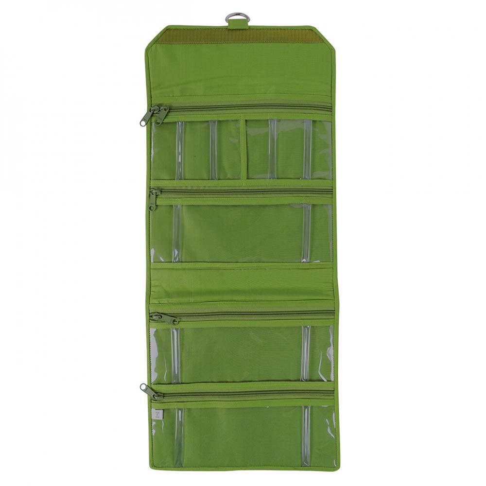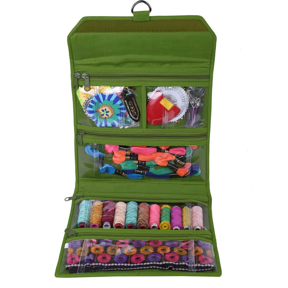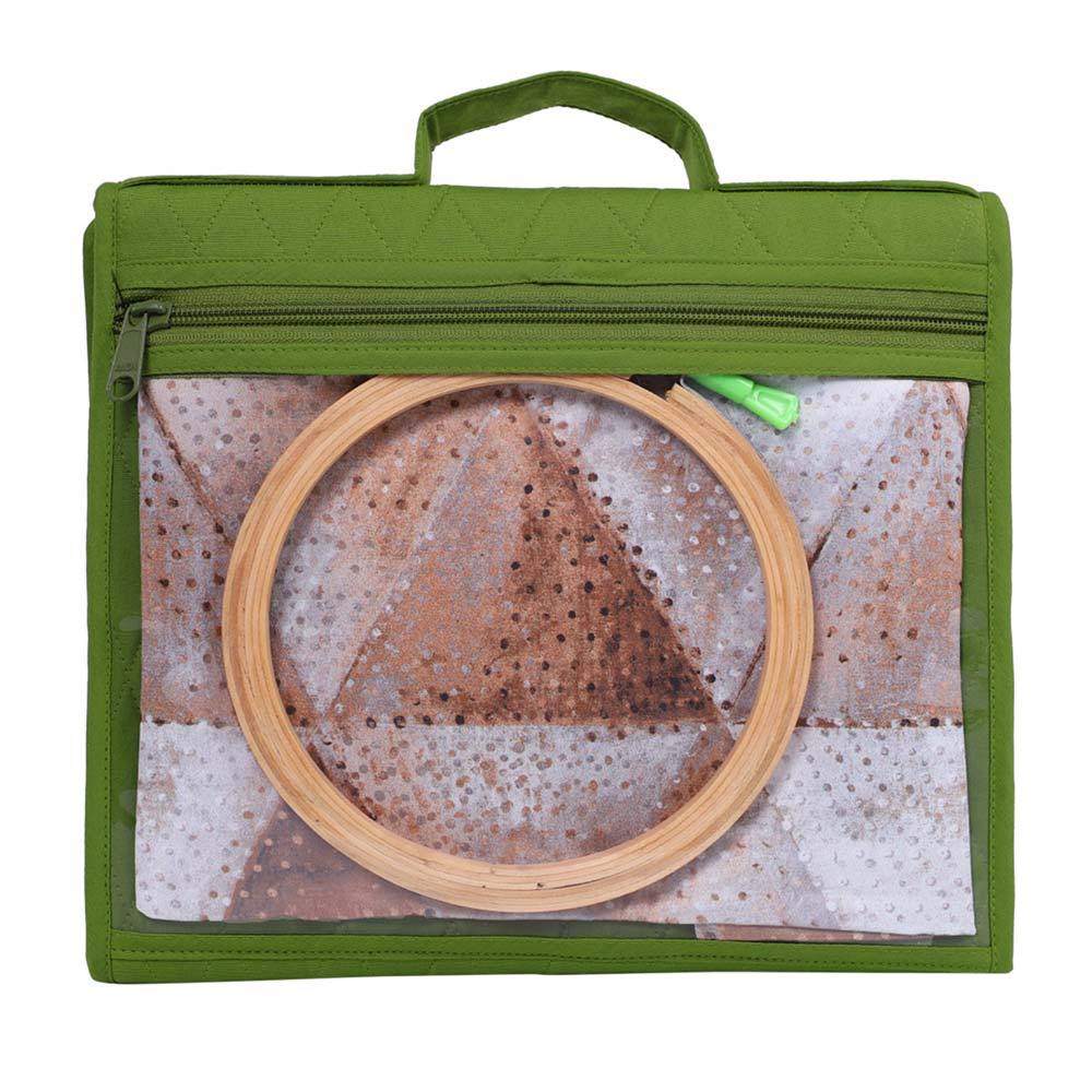 An Innovative and practical storage bag to organize your threads and carry your small projects to class, retreats and store at home. 4 horizontal see-through pockets internally and a large external pocket to store your small project. This quilted and lightweight organizer has a small handle to carry the bag or a hook to hang and display all your threads.