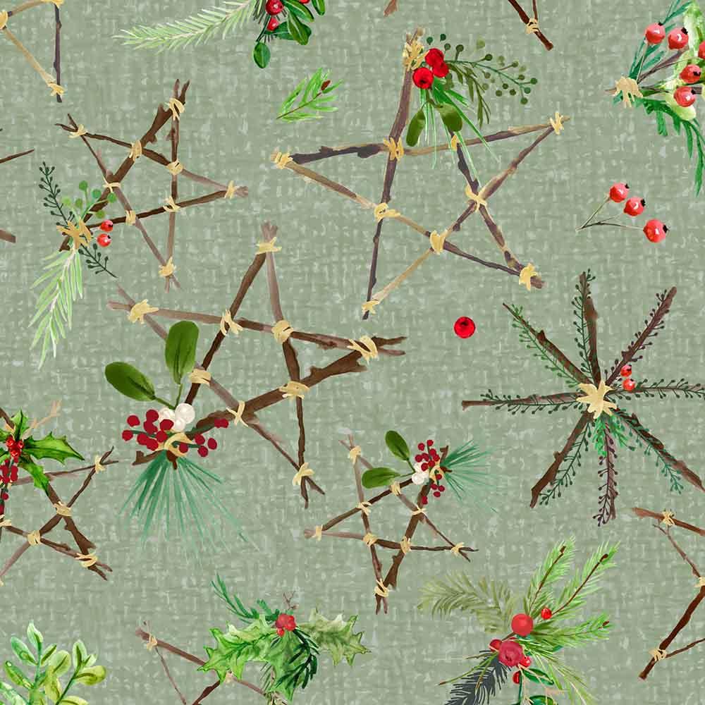 Maywood Studio - Winter Wreaths - Stars - Green - Yardage