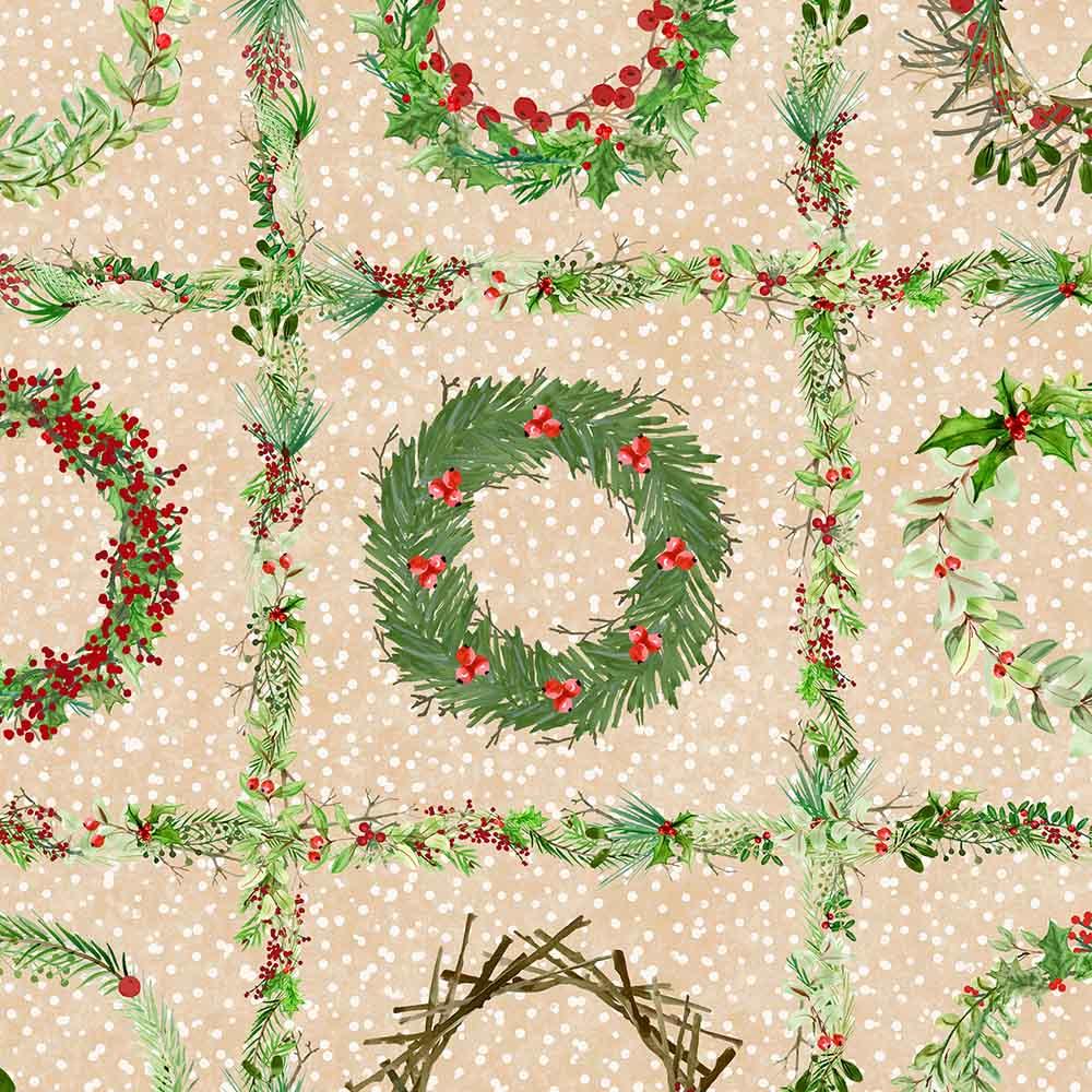 Maywood Studio - Winter Wreaths - Wreath Blocks - Cream - Yardage