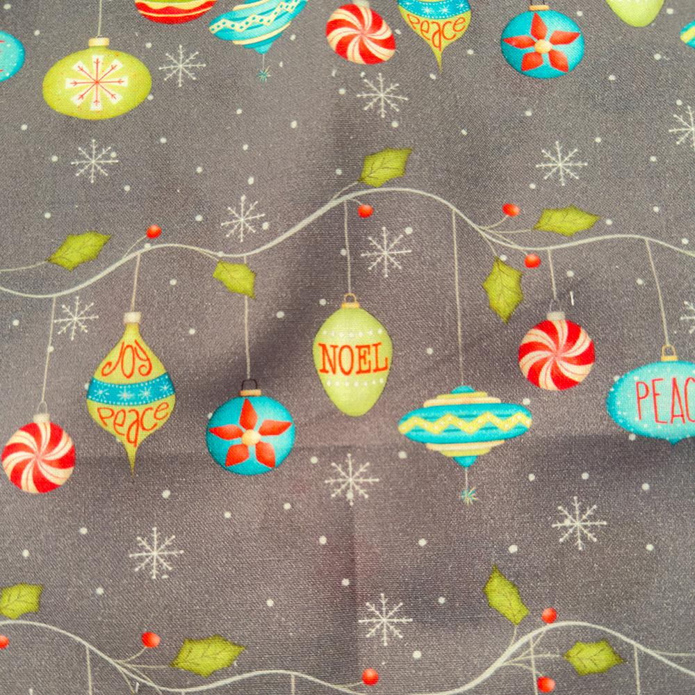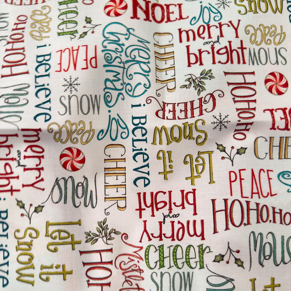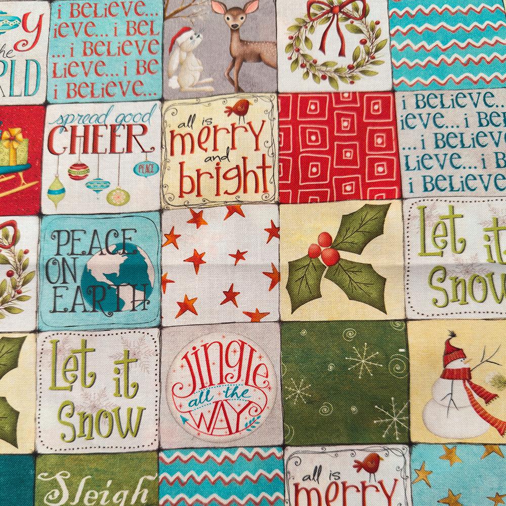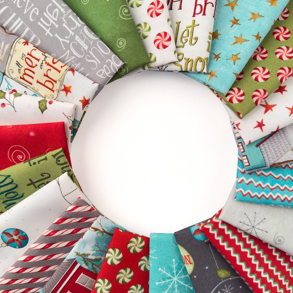 A Very Terri Christmas is a festive fabric collection by Terri Degenkolb for Windham Fabrics. It features whimsical holiday designs including snowmen, ornaments, wreaths, merry phrases, stars, holly, peppermints, snowflakes and coordinating stripes and geometrics in red, green, ivory, silver, gray and aqua. This 10" Squares collection includes 42 pieces.