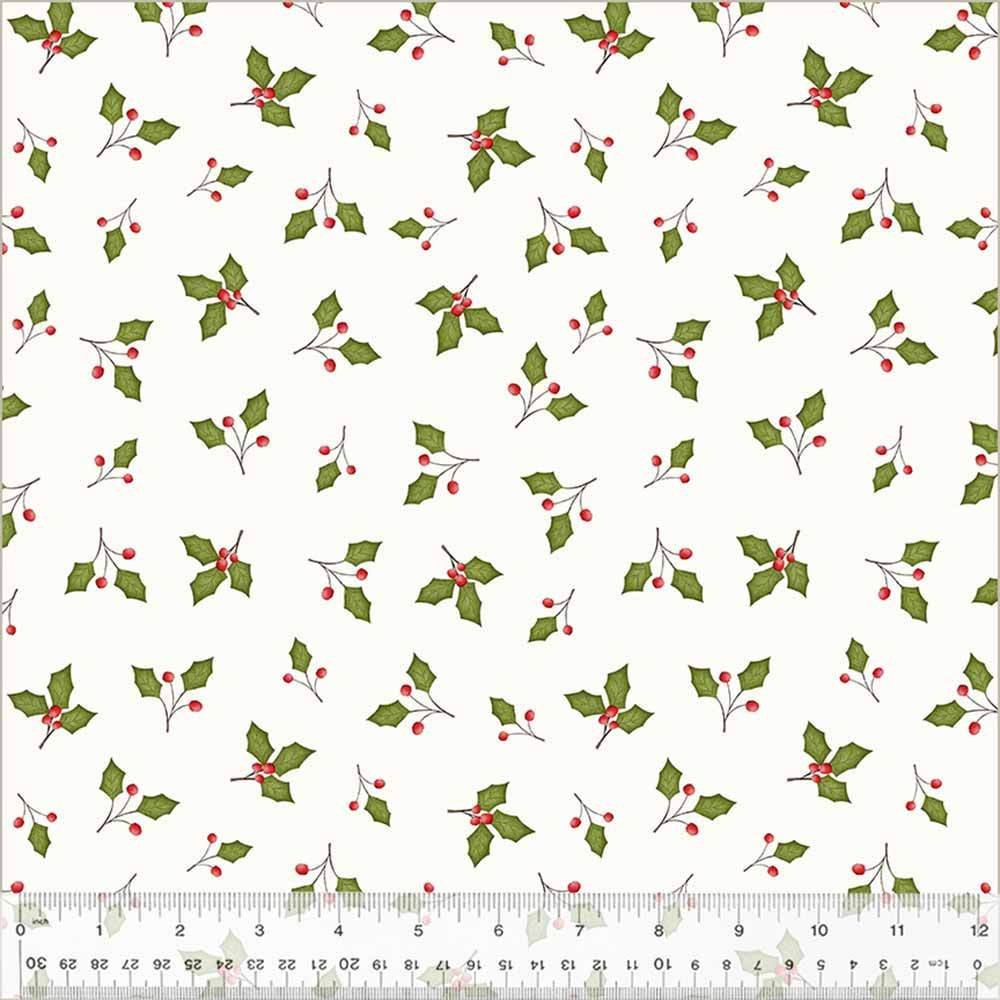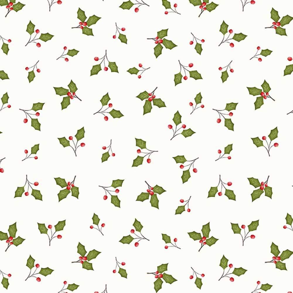 Windham Fabrics - A Very Terri Christmas by Terri Degenkolb - Holly Leaves - Ivory - Yardage