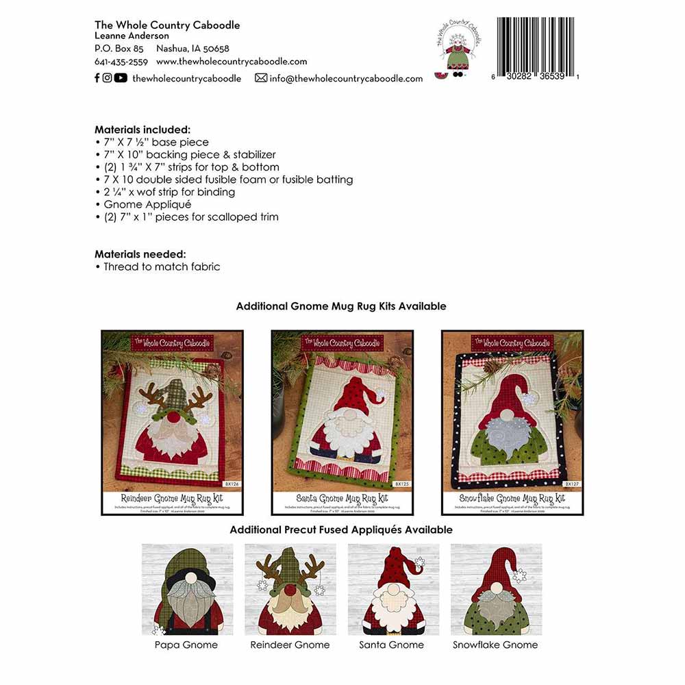 Papa Gnome Mug Rug Kit includes all of the fabric and notions you need to make one mug rug along with a precut fused gnome cut out and ready to assemble!! All you need is thread and a small amount of time. Great to make as a gift, give the kit as a gift to someone who loves to sew, or keep for yourself!