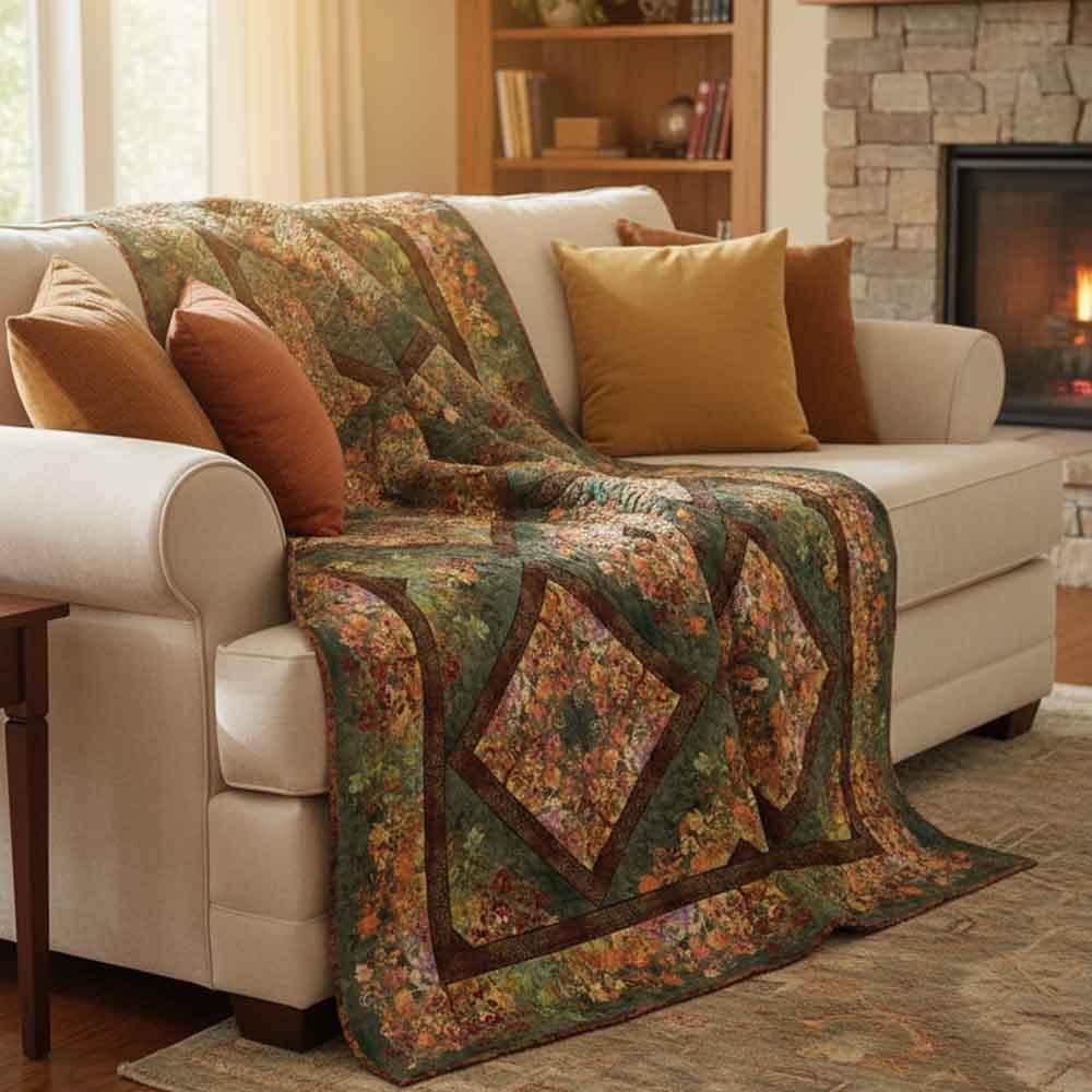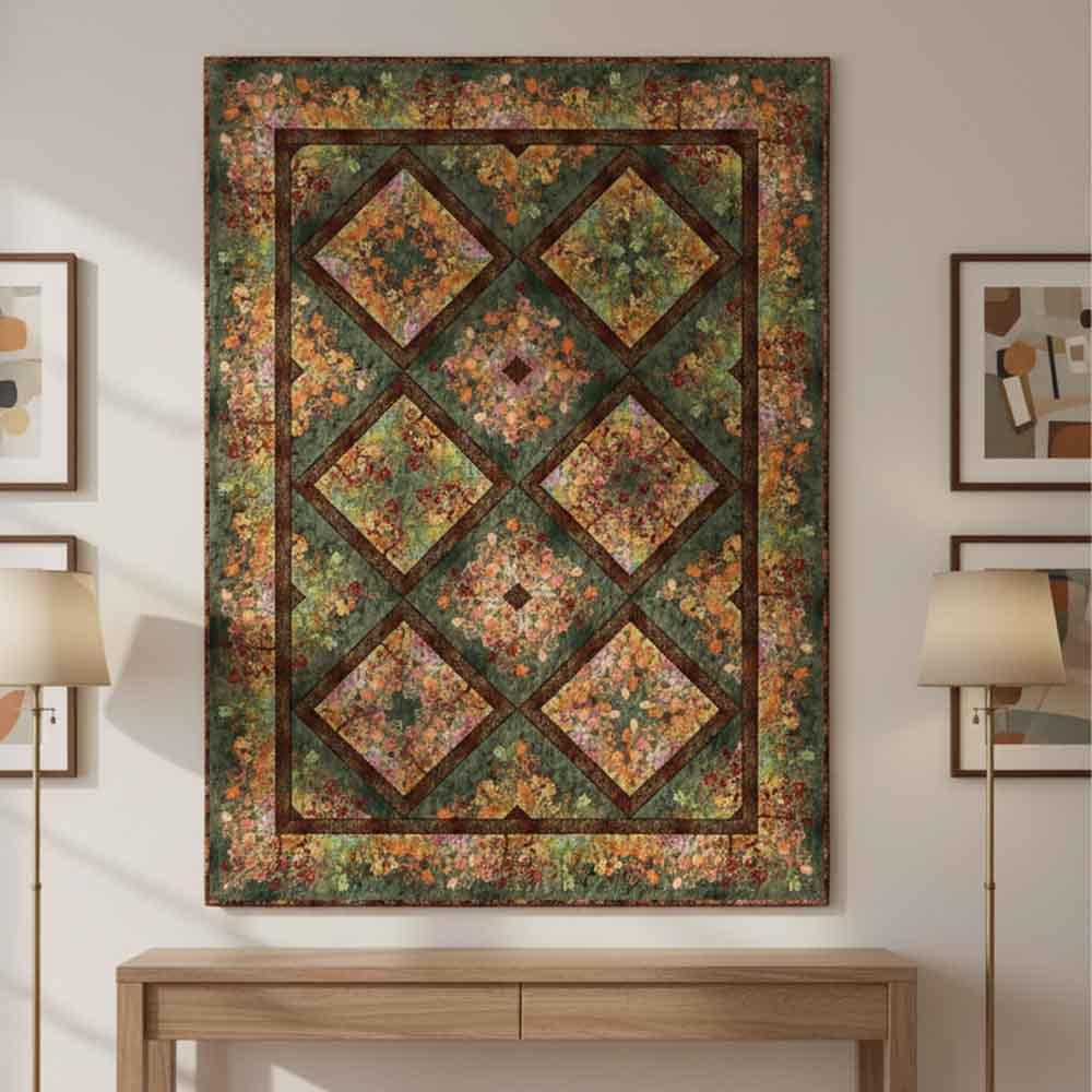 Dramatic in color and texture and filled with florals, the Evanescence collection designed by Jason Yenter is featured in this project from In The Beginning. The Evanescence Kaleidoscope Kit in Spice includes pattern and all the fabrics needed for the top and binding of a 73" x 100" quilt. Backing available separately, 7-1/2 yards x 44" wide recommended.