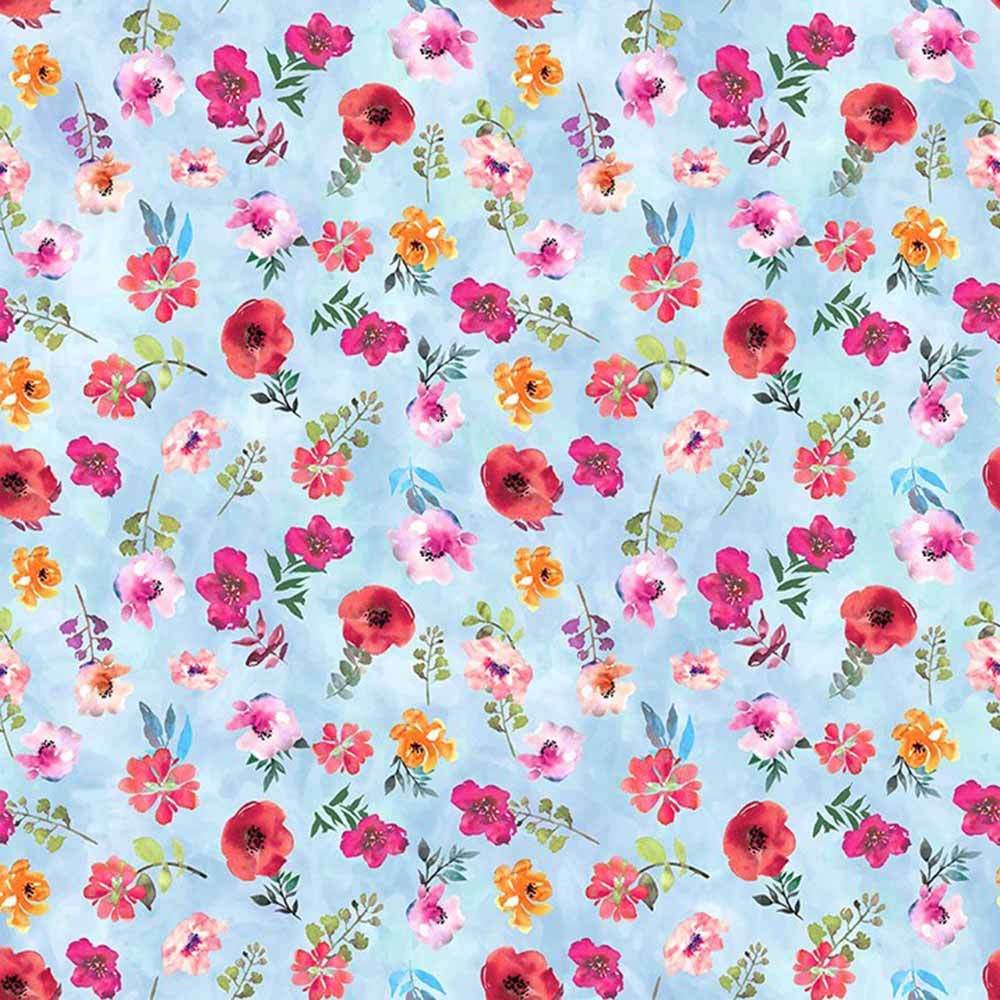 In The Beginning - Glorious Garden - Inspired by Kathleen Winslow Gardner - Small Flowers - Sky - Yardage