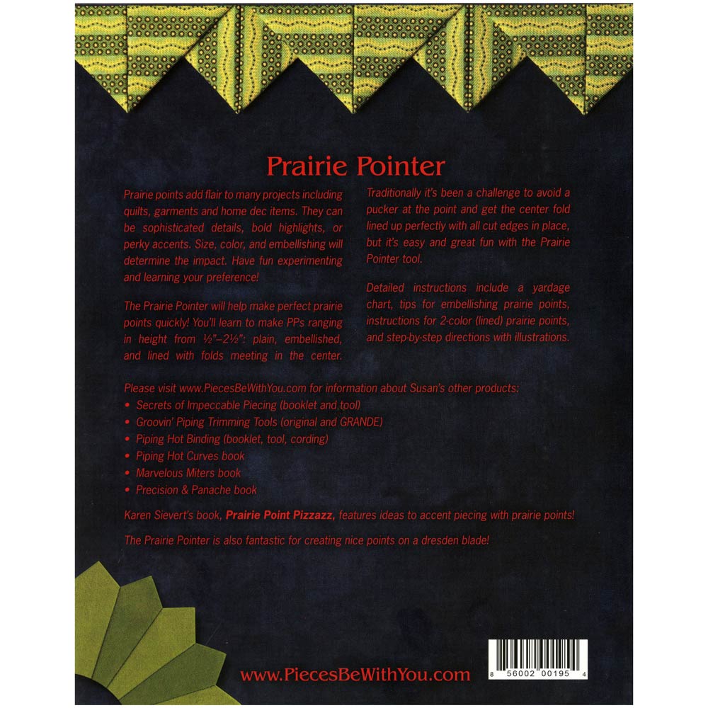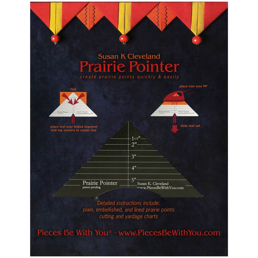 Making perfect prairie points has never been easier! Sometimes it's frustrating getting a sharp tip on a PP with all cut edges lining up perfectly, but the Prairie Pointer eliminates the frustration and produces perfect prairie points every time with a center fold, finishing from 1/2in up to 2 1/2in!