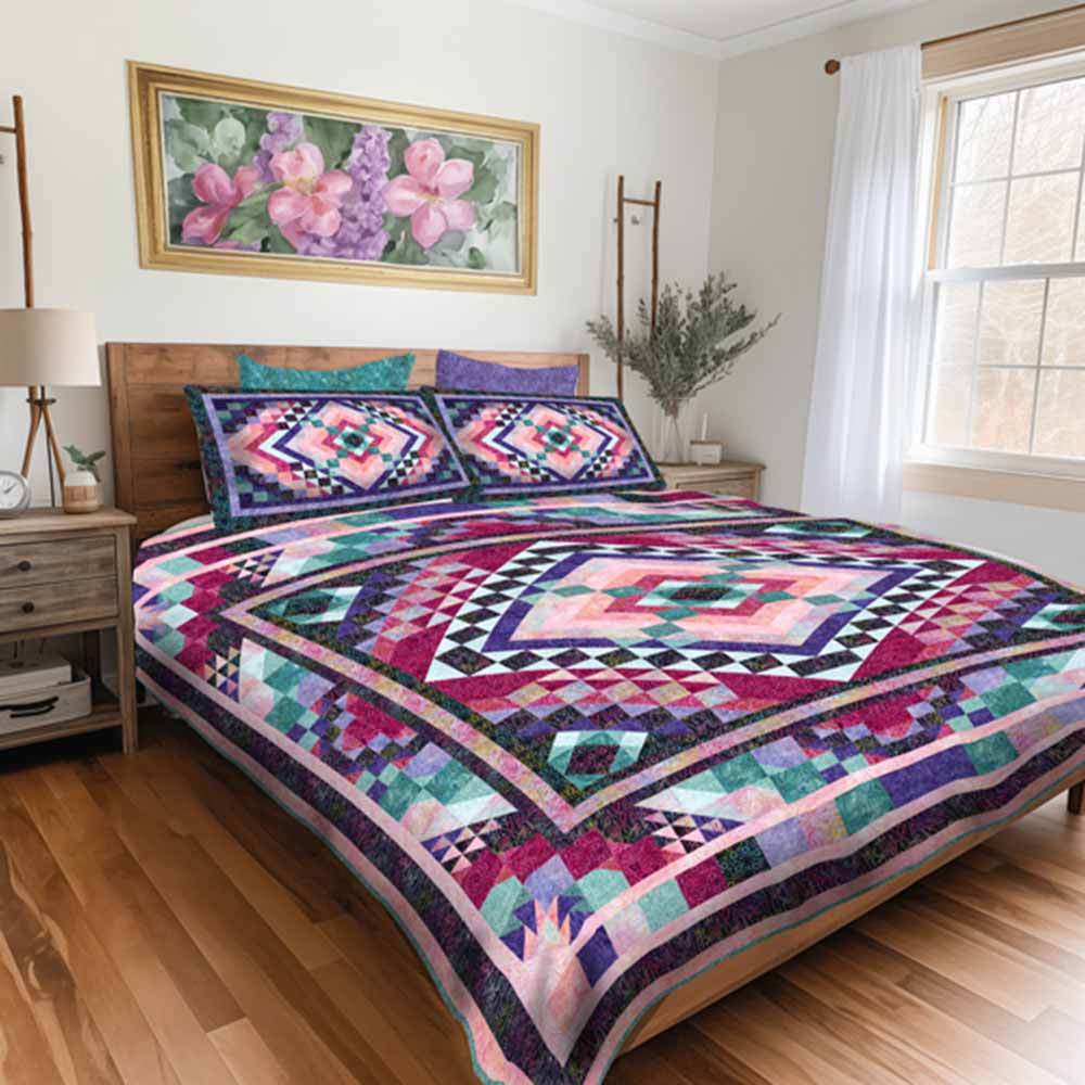 We have a big old crush on the Candy Crush Block of the Month from the team at Wilmington Prints. This new batik project is filled to the brim with candy-like rich tones including shades of aqua and teal, purple, pink and burgundy. This confident beginner pieced quilt finishes at 92" x 103" and will bring a special punch of color to any space. Kit includes full pattern set broken out into 10 months and all the batik fabrics needed for the top and binding. Backing is available separately, 8-1/2 yards of a 44" wide or 3-1/2 yards of a 108" wide is recommended. We also offer separately, a 16-piece batik fat quarter fabric pack that includes all Candy Crush fabrics to have on hand in case of any miscuts.