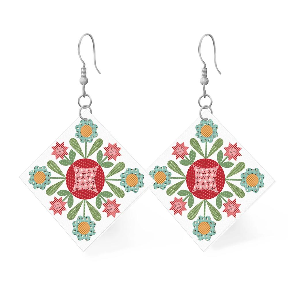 The Square Earrings by Hometown Leatherworks for Riley Blake Designs are proudly American made by hometown artisans. They are crafted from 100% full-grain leather. These lightweight earrings feature a design from Prairie by Lori Holt of Bee in my Bonnet. Earring size is 1" x 1". Hang is 2".