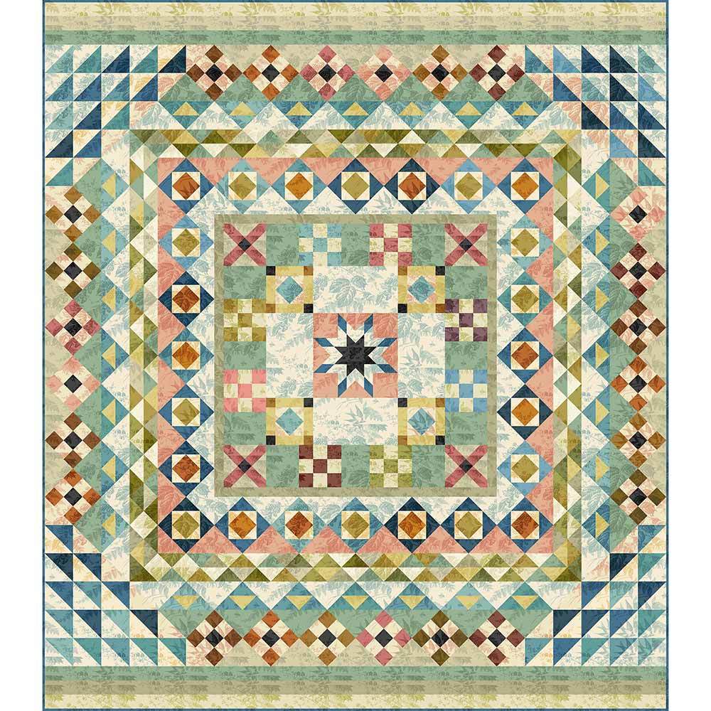 The Green Mountain Quilt Kit includes pattern by Edyta Sitar and all fabrics needed for the top and binding of a 66" x 75" quilt. Backing is available separately, 5 yards x 44" wide is recommended.
