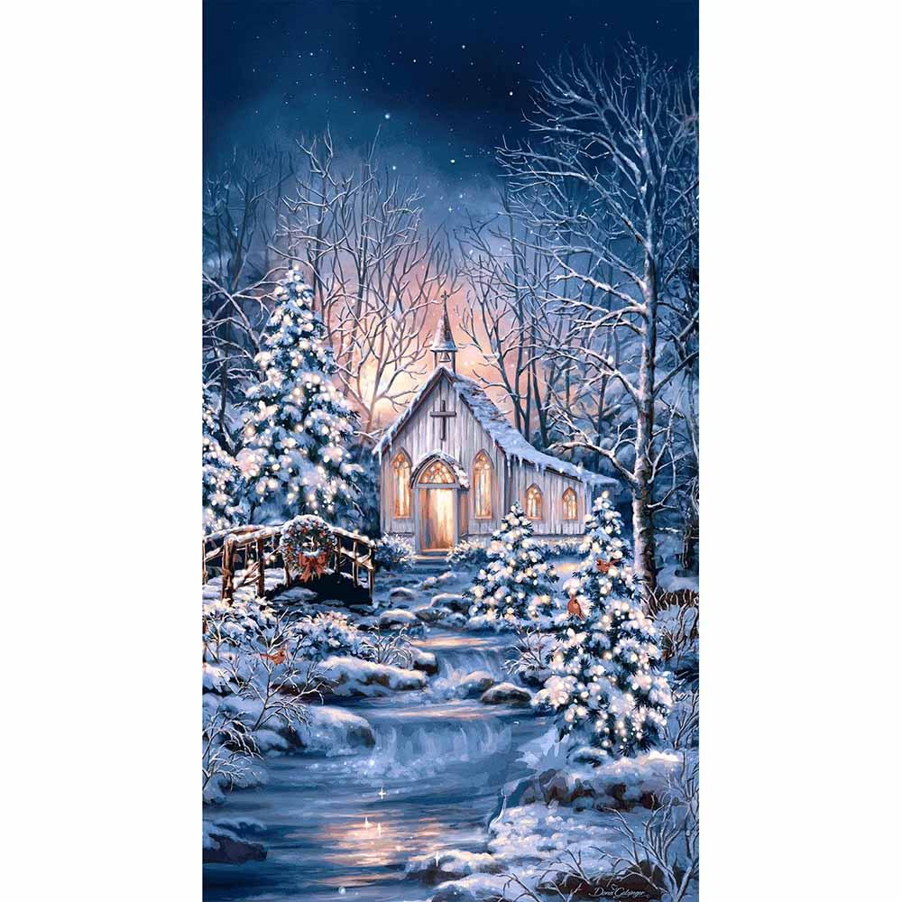 Quiet snowfall, glowing windows, and a sense of stillness in the air. Peace & Harmony by Dona Gelsinger for Timeless Treasures captures the beauty of a serene winter moment. Anchored by a stunning panel featuring a snow-covered church nestled in a peaceful landscape, this collection evokes warmth, reflection, and the gentle calm of the season.