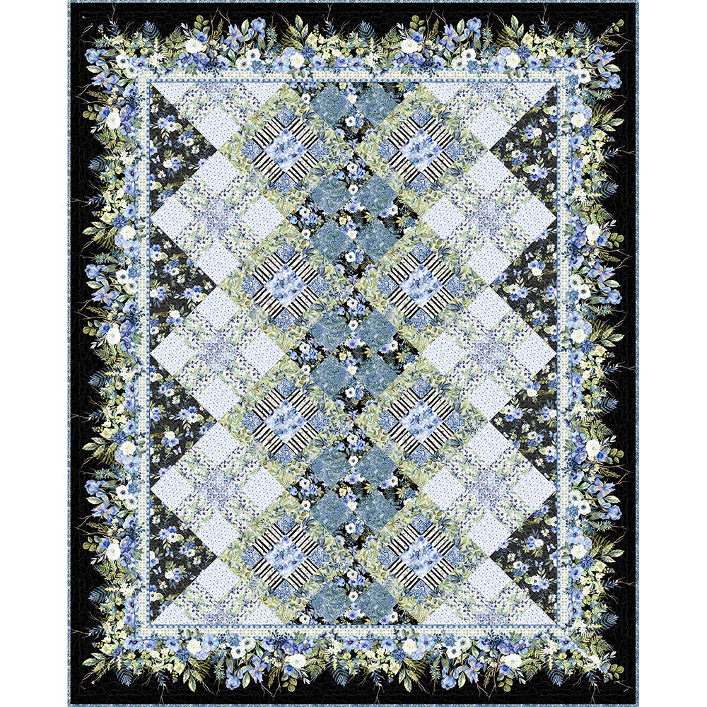 The Sanctuary Quilt Kit includes pattern and all fabrics needed to complete the front and binding of a 70" x 87" quilt. Backing is available separately, 6 yards x 44" wide is recommended.