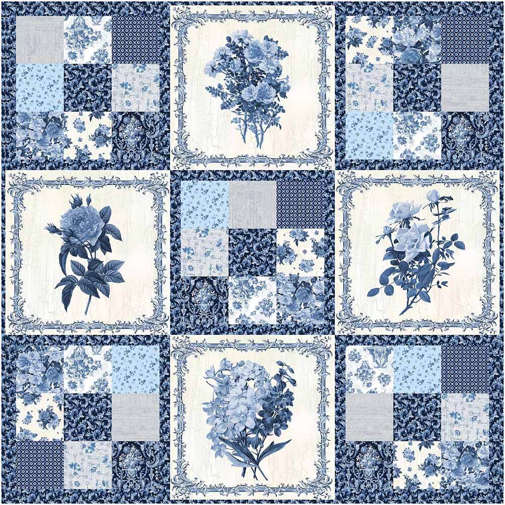 English Blue & White is reminiscent of elegant porcelain dishes. Blossoming flowers pop off the fabric and welcome nature into your project. The Country Life Kit includes pattern by Villa Rosa and all the fabrics needed, including panel, for the top and binding from the English Blue & White collection by AJ's Watercolor Studio for Blank Quilting. Finished size is 48" square. Backing is available separately, 3-1/2 yards x 44" wide is recommended.
