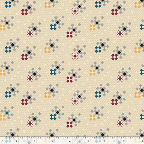 The rich history of the mills of the young colonies in the New World provides the unique inspiration for Lynn Wilder's gorgeous collection and block of the month. The palette of slate blues and berry mixed with neutrals is reminiscent of the era, yet fits easily into today's trans-seasonal decorating trends. The larger blocks in the quilt are designed to resemble the gears in the mill, while some of the smaller blocks look like an old millstone quilt block pattern.