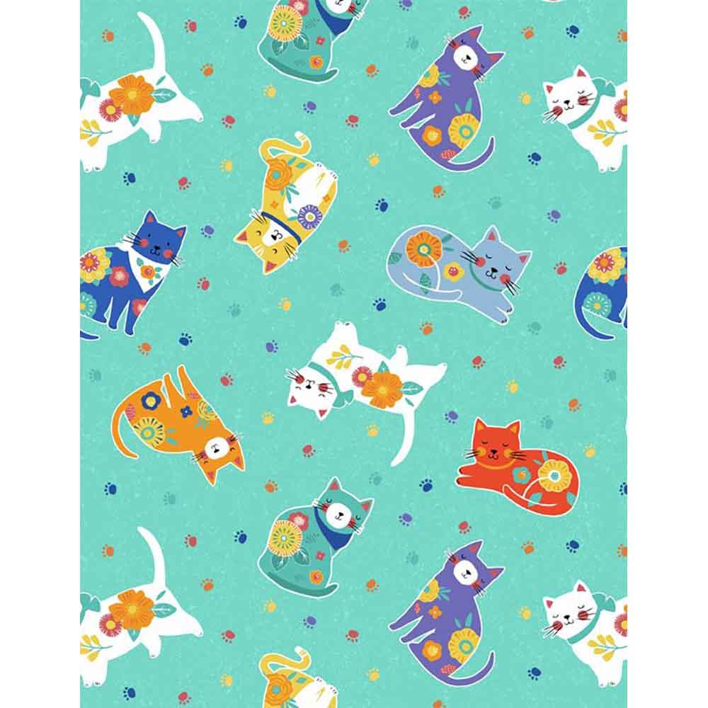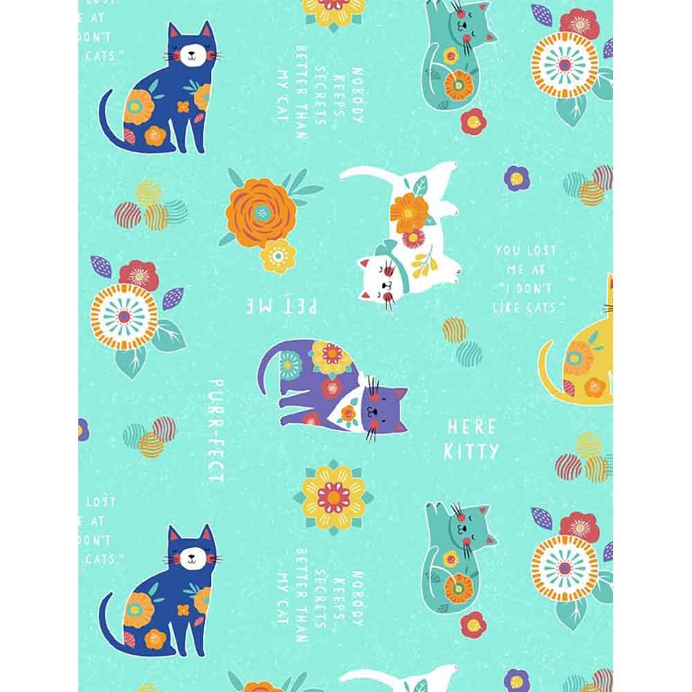 Charming and frisky! Perfect for brightening up any space or gifting to a fellow feline fan. This kit includes all the fabrics needed for two 18" x 18" pillow tops and backs from Ann Rowan's Fe-line Frisky collection for Wilmington Prints. Fabrics feature sassy cats in a bold color palette of turquoise, black and white. Kit also comes with pattern by Wilmington Prints that includes paper templates.