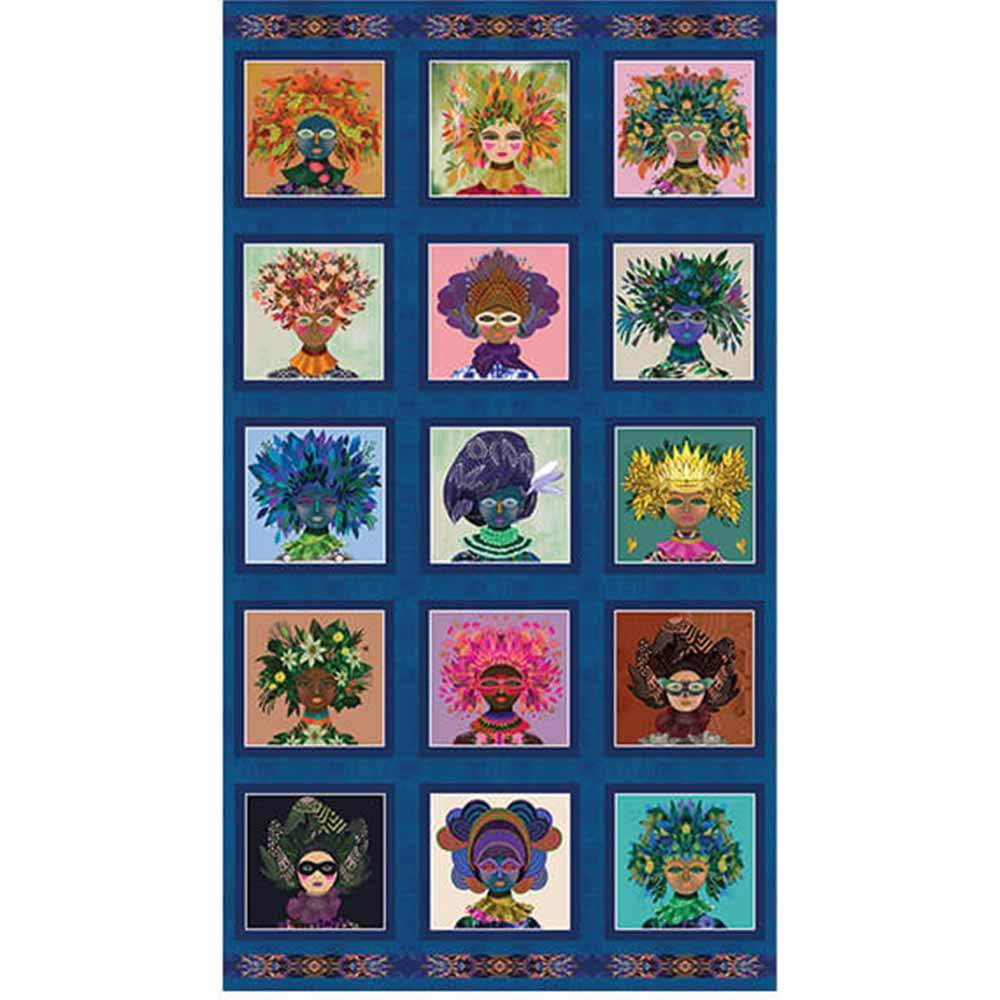 Step into a quiet world of wonder with artist Danielle Duer. She is a visionary artist whose work invites curiosity, deep reflection and a sense of adventure. Her Gentle Warriors collection focuses on the intense yet gentle spirit of the women in the portrait panel. Accompanied by intricate and elaborate coordinates in deep saturated hues, these fabrics are an homage to the strength and vulnerability in each of us. The Sisterhood Quilt Kit includes pattern with paper templates and all the fabrics needed, including panel, for the quilt top and binidng. Finished size is 45" x 55". Backing available separately, 3-1/2 yards x 44" wide recommended.