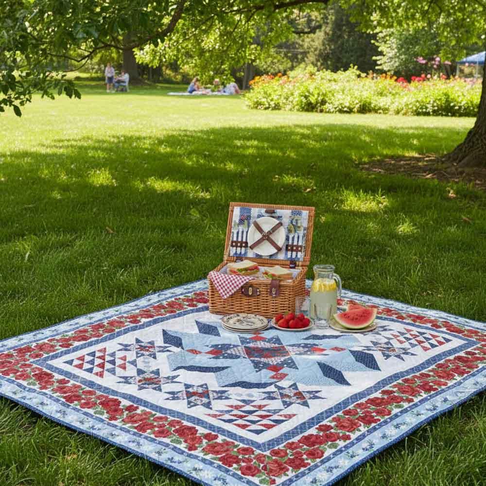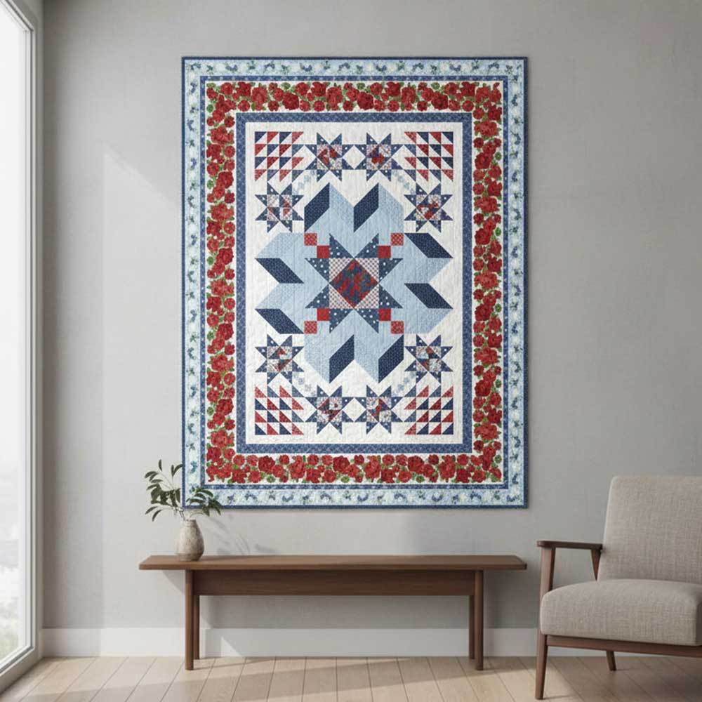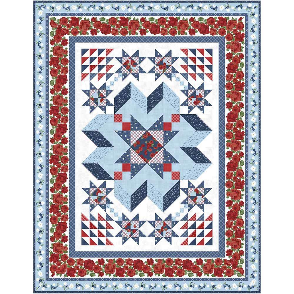 An eye-catching project with Americana style. The Summertime Daydream quilt project designed by Wilmington Prints features the Summertime Daydream fabric collection by Jennifer Ellory for Wilmington Prints that has bold red roses, dainty florals, classic stripes, plaids, and grid textures in a striking palette of red, navy, sky blue, and white. Kit includes pattern and all the fabrics needed for the top and binding of a 54" x 70" finished quilt. Backing available separately, 4 yards x 44" wide or 2 yards x 108" wide recommended.