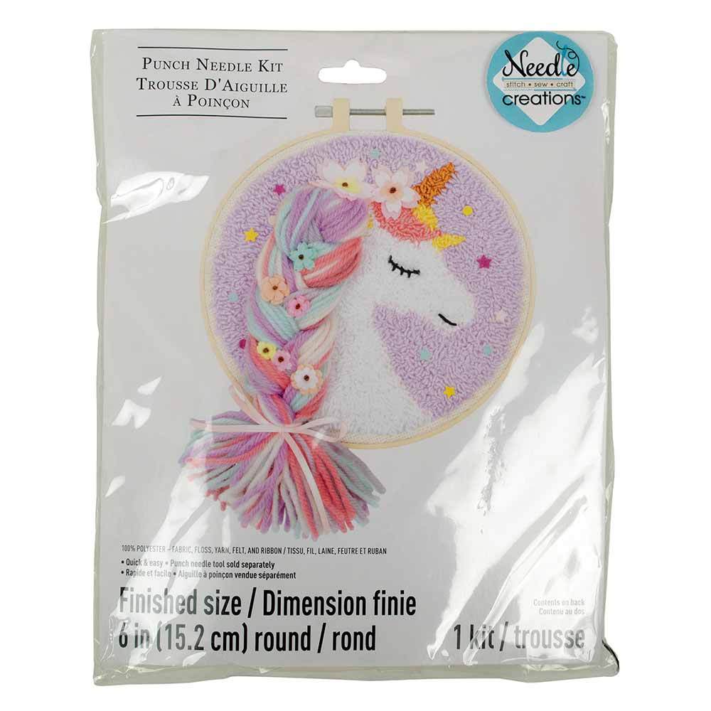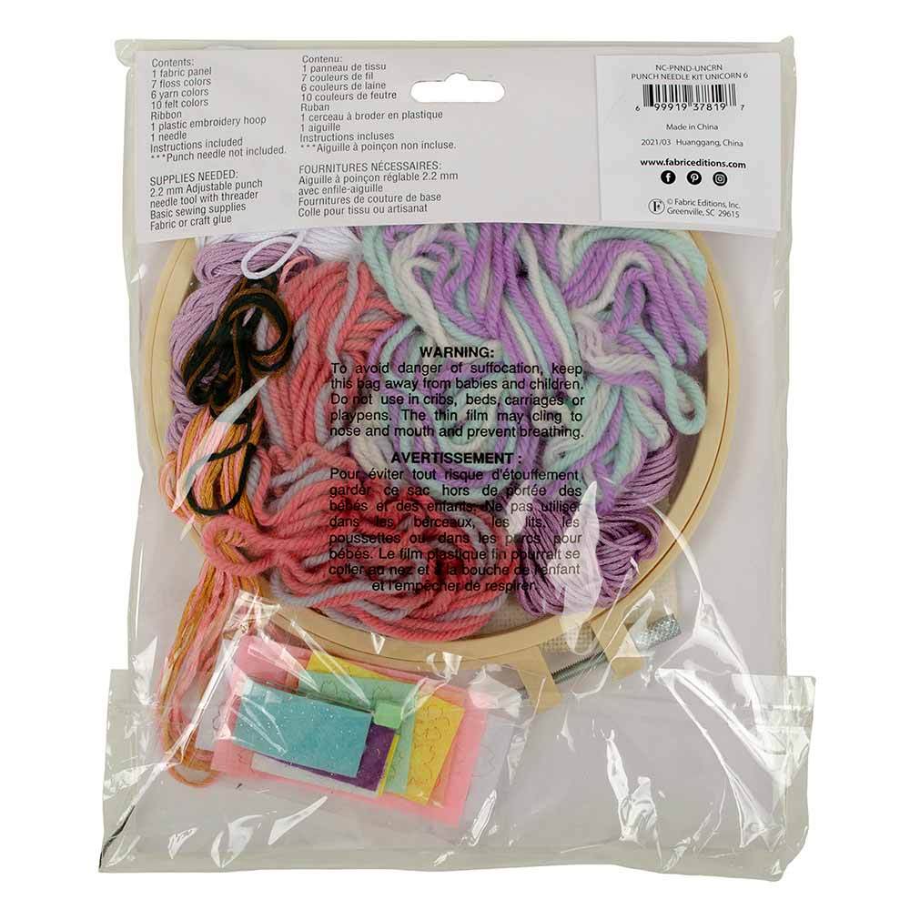 Kit includes 100% Polyester Pre-Printed Panel, embroidery Floss, may include miscellaneous embellishments, 6" plastic locking embroidery hoop and easy to follow instructions. Kit requires a basic knowledge of punch needle. Needle punch tool sold separately. Additional supplies that may be needed are listed on instructions.