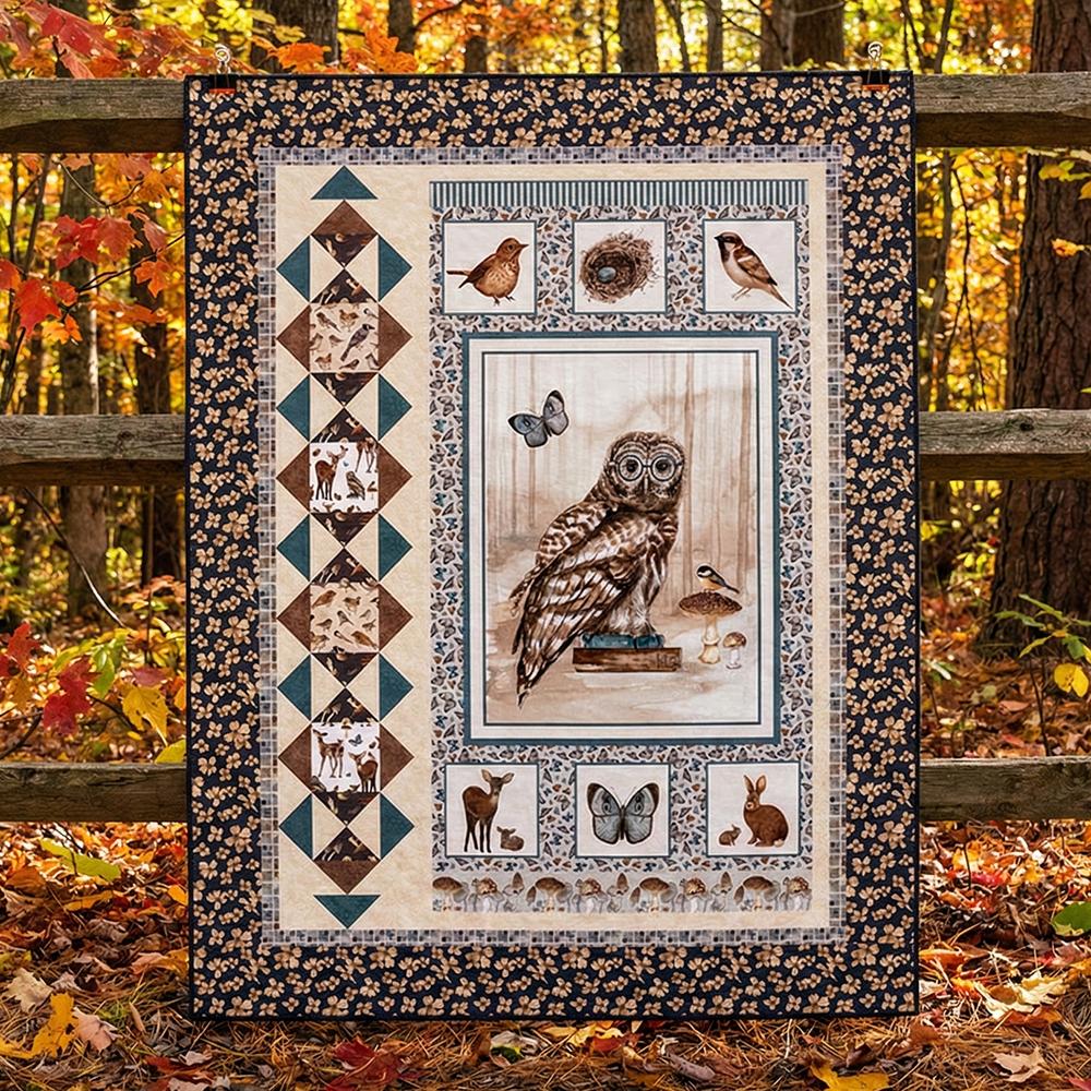 Kit also includes pattern with easy to follow instructions from The Sweet Tea Girls and all the fabrics needed, including panel, from the Whimsical Woods collection. Finished size of this advanced beginner project is 42" x 54". Backing available separately, 3-1/2 yards x 44" wide recommended.