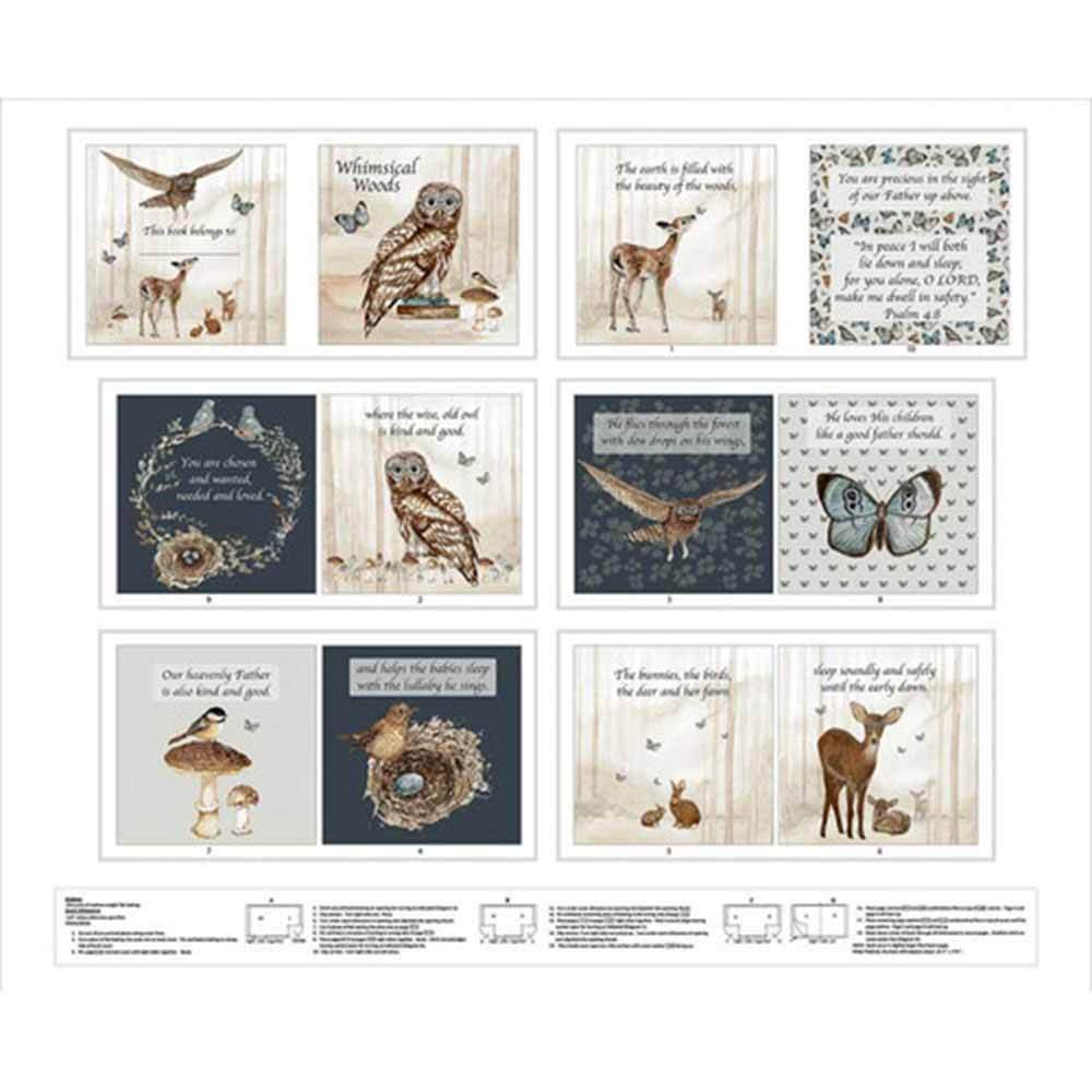Whimsical Woods is a stunning group by Dawn Rosengren that will bring nature into your home. Friendly forest critters including beautiful birds, rabbits and deer greet you as you walk through the forest. The peaceful tune of birds chirping is a soothing sound as you spot mushrooms. The soft blue and brown color palette is a great addition to your home. Kit comes with a FREE 36" Book Panel! Make this book panel so you have something to read to little ones that visit.