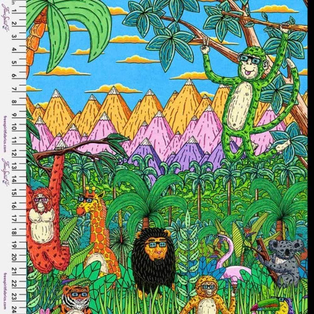 Nothing like a party in the jungle! This 24" x 44" panel is by Mulga from the Tropical Jungle Jams collection for FreeSpirit Fabrics.