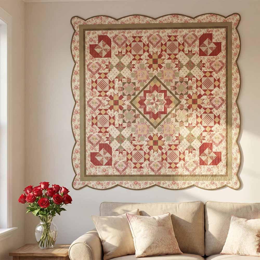 Each month, you’ll receive the pattern and all the fabrics needed to complete that section of the quilt. The pattern includes instructions for both scalloped and straight borders, and a video tutorial is available to guide you through creating the scalloped edge.