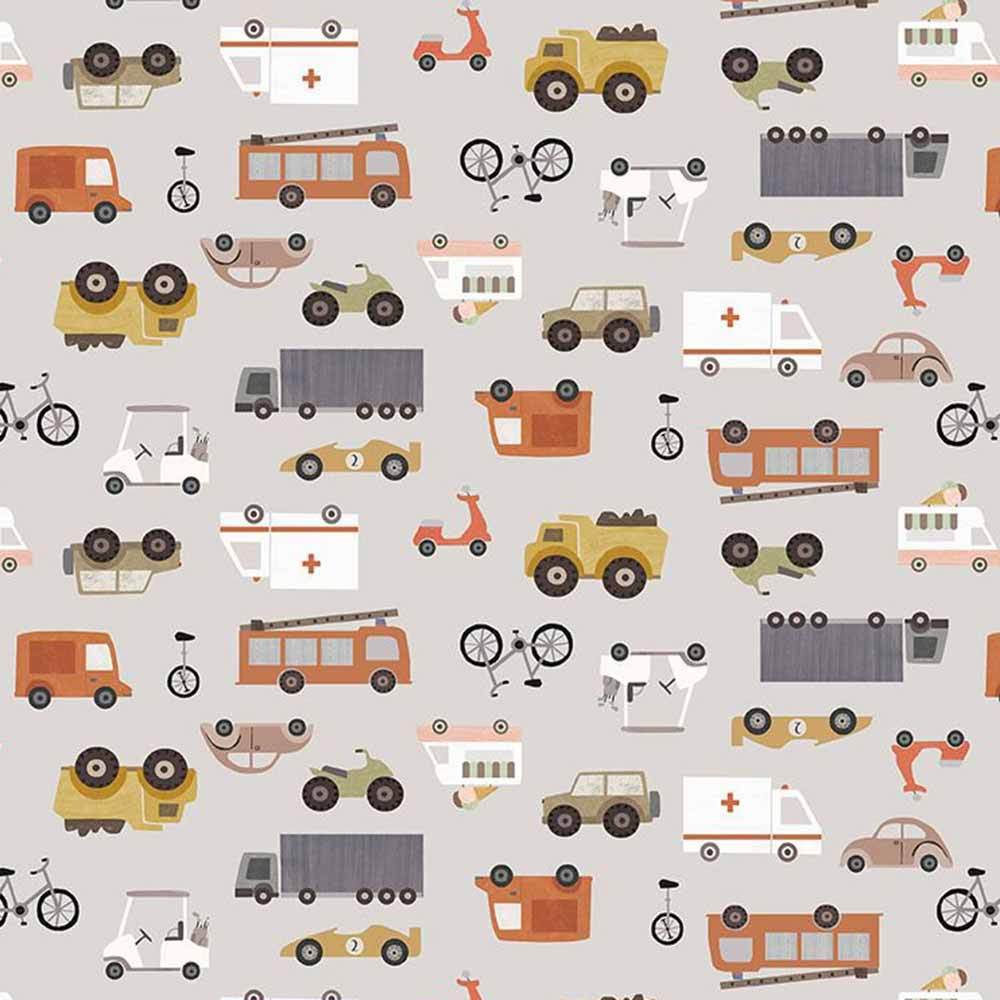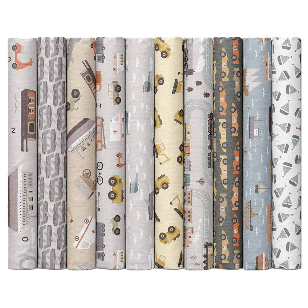 In a soft, modern palette, this travel inspired collection by Paint Love Studio for Dear Stella features prints of planes, trains, boats and wagons. The Move 'Em Out Kit includes pattern by The Sweet Tea Girls and all the fabrics needed, including panel, for the top and binding of a 57" x 74" throw quilt. Backing available separately, 3-1/2 yards x 44" wide is recommended.
