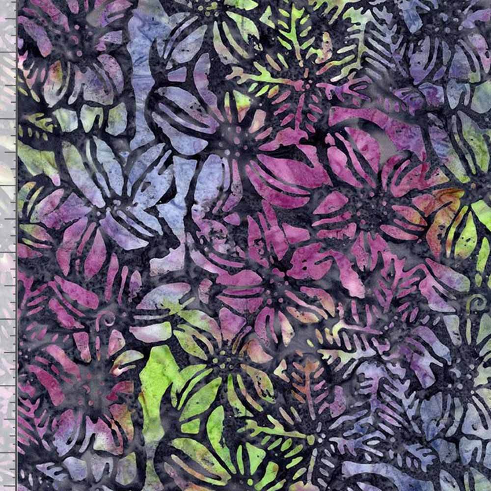 Layers of blossoms are featured in this multi colored batik from the Connected by Heart Tonga Batiks collection by Timeless Treasures.