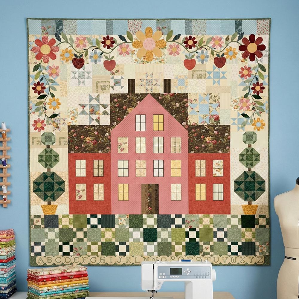 The program features Kathleen's Story, a collection inspired by Chris’ mother, Kathleen. Delicate florals, paisleys, and buds mix beautifully with tone-on-tone textures, a charming cross-stitch panel, and eight tonal Strip-It™ variations. This collection features the soft color palette of sage, coral, dusty blue, butter, and warm neutrals. Each month for 10 months, you'll receive the pattern and all the fabrics needed to complete that section of the project. Available separately we are offering a 28-piece quarter yard collection of fabric all from Kathleen's Story to match back with your block of the month/chunk of the month project. Backing available separately as well, 5 yards x 44" wide or 2-1/2 yards x 108" wide is recommended. This intermediate project finishes at 68" x 71".