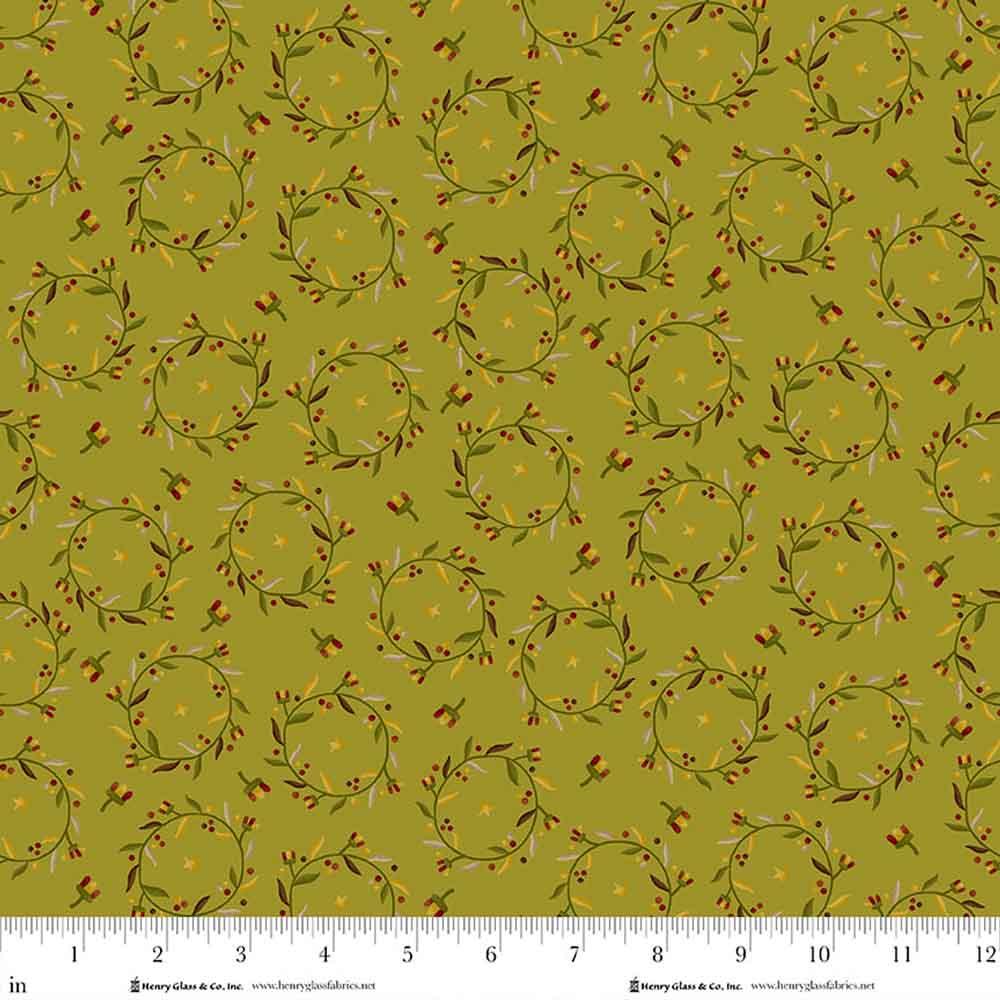 Henry Glass & Co. - Pennyberry Farm by Kim Diehl - Wreaths In Thyme - Green - Yardage