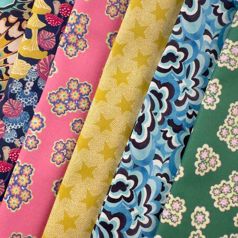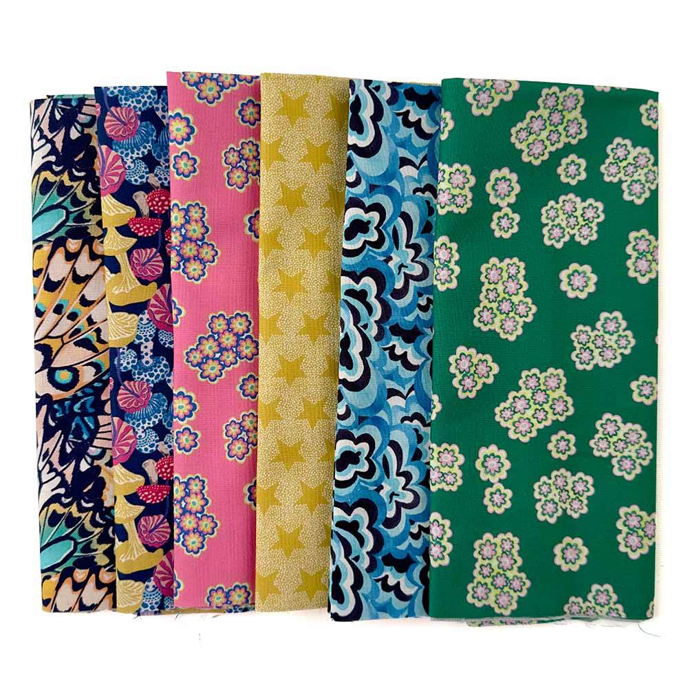 In an almost electric color palette of pink, blue and green, the Magic Garden fabrics will surely spark inspiration for a dreamy and vibrant quilt project or decor. This Medley includes 6 fat quarters.