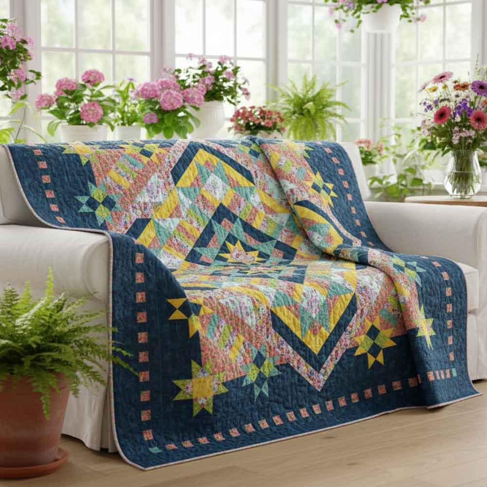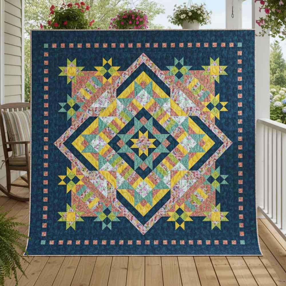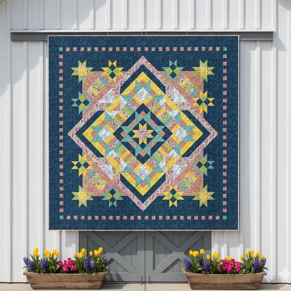 The Glorious king-size quilt project by Quilt Moments is a true showstopper—perfect for quilters of all skill levels. This stunning design comes to life in a vibrant, fresh palette of blue, teal, aqua, blush, green, and yellow. The pieced blocks are made from squares and rectangles—no Y-seams or tricky piecing required. The featured fabrics are from the Impression collection by Chong-A Hwang for Timeless Treasures, showcasing beautifully detailed digital prints. Lush florals appear as if painted on canvas and are paired with coordinating textures, a stripe, and tonal designs for a rich, artistic look. Kit includes full pattern set broken out into 11 months and all the fabrics needed for the top and binding of a finished 106" x 106" quilt. Separately we're offering an Impression 8-piece fat quarter pack that matches back perfectly with this project and will be great to have on hand in case of any miscuts. Backing is also available separately, 10 yards x 44" wide or 3-1/2 yards x 118" wide is recommended.