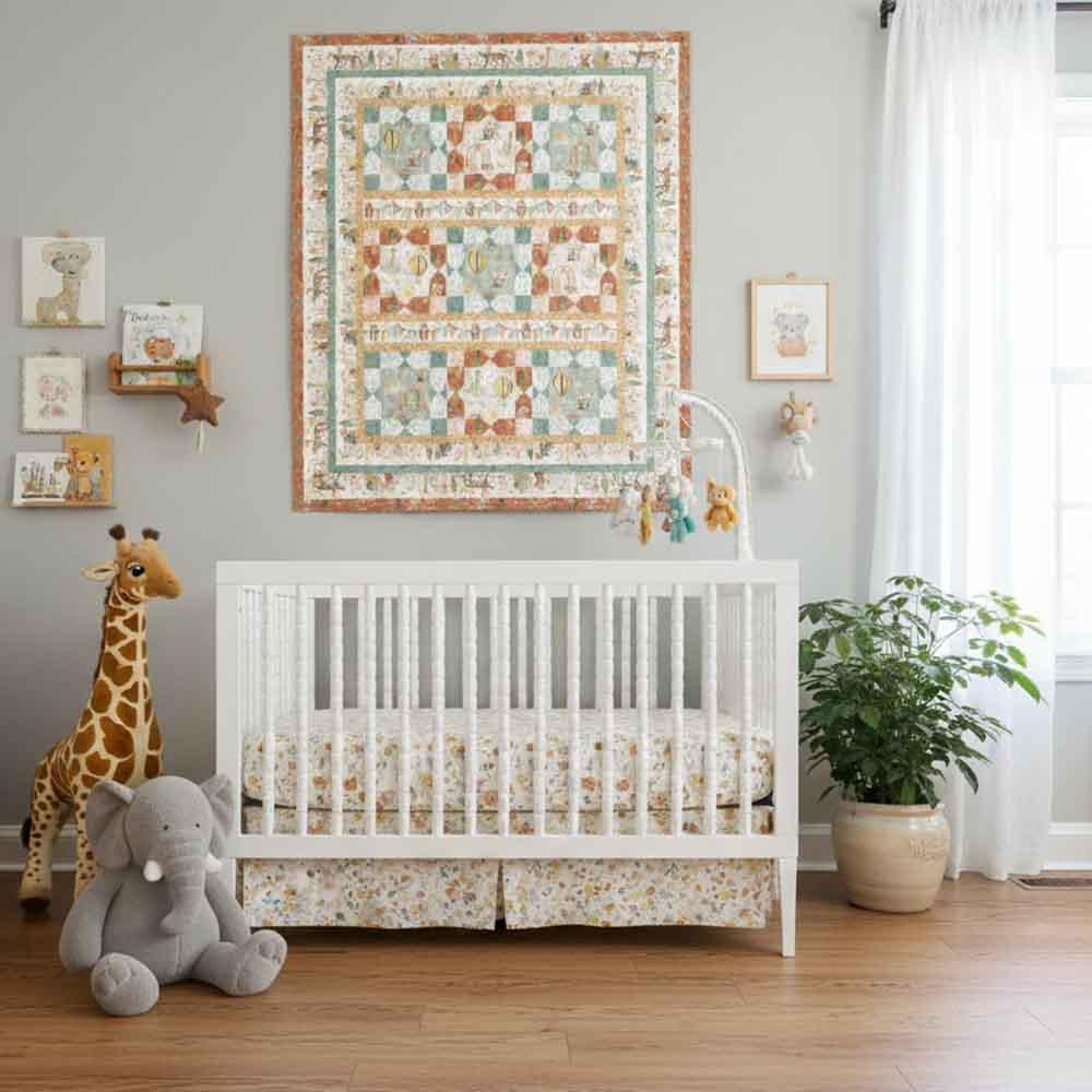 Welcome to the Mini Menagerie, a charming fabric collection by Audrey Jeanne Roberts, where the animal kingdom's little ones come to life! The sweet designs and color palette help create a soothing and imaginative space. The Mini Menagerie Border Quilt Kit includes pattern by Cyndi Hershey and all the fabrics needed for the top and binding of a 47" x 56" quilt. Backing available separately, 3-1/2 yards x 44" wide recommended