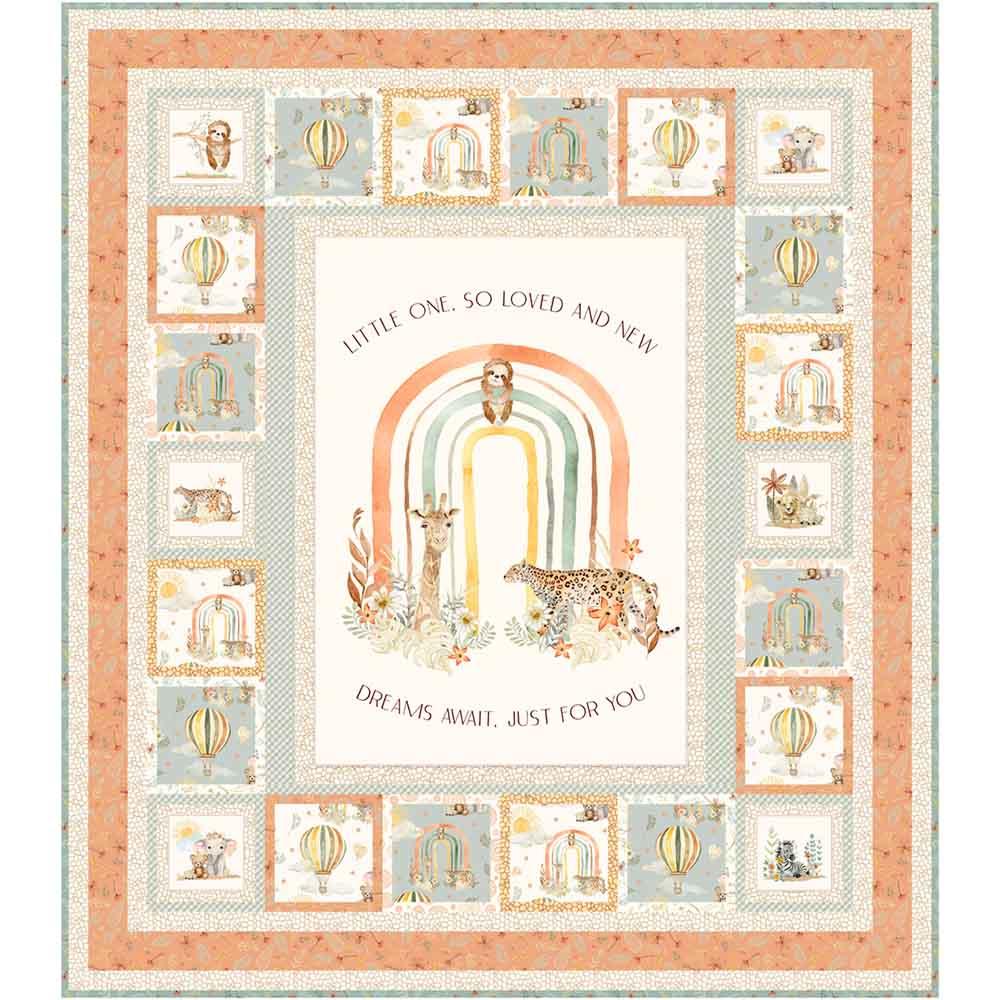 Welcome to the Mini Menagerie, a charming fabric collection by Audrey Jeanne Roberts, where the animal kingdom's little ones come to life! The sweet designs and color palette help create a soothing and imaginative space. The Mini Menagerie Kit includes pattern by Cyndi Hershey and all the fabrics needed, including panel, for the top and binding of a 44" x 50" quilt. Backing available separately, 3-1/2 yards x 44" wide recommended.