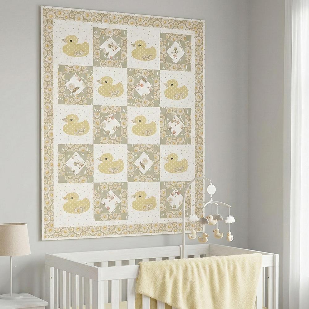 You'll have your ducks in a row with this project! Quilt features the Tiny Waddles collection by Jessica Yon Lo for Figo Fabrics. Prints include curious ducks, daisies and dots in a soft color palette of yellow, blush and cream. The QUACK! Kit includes pattern by Coach House Designs and all the fabrics needed for the top and binding of a 36" x 48" quilt. Backing available separately, 1-1/2 yards x 44" wide recommended.