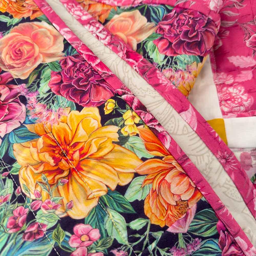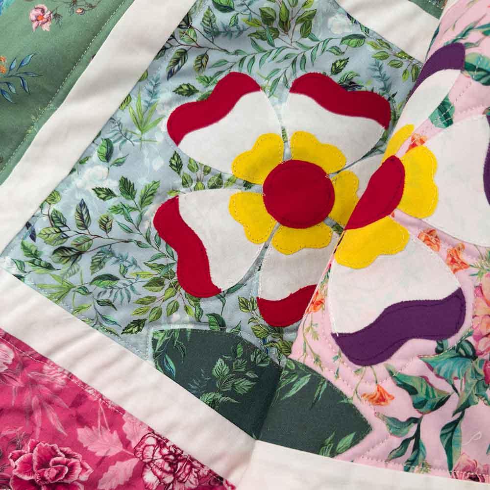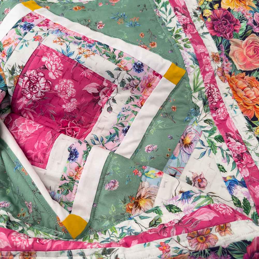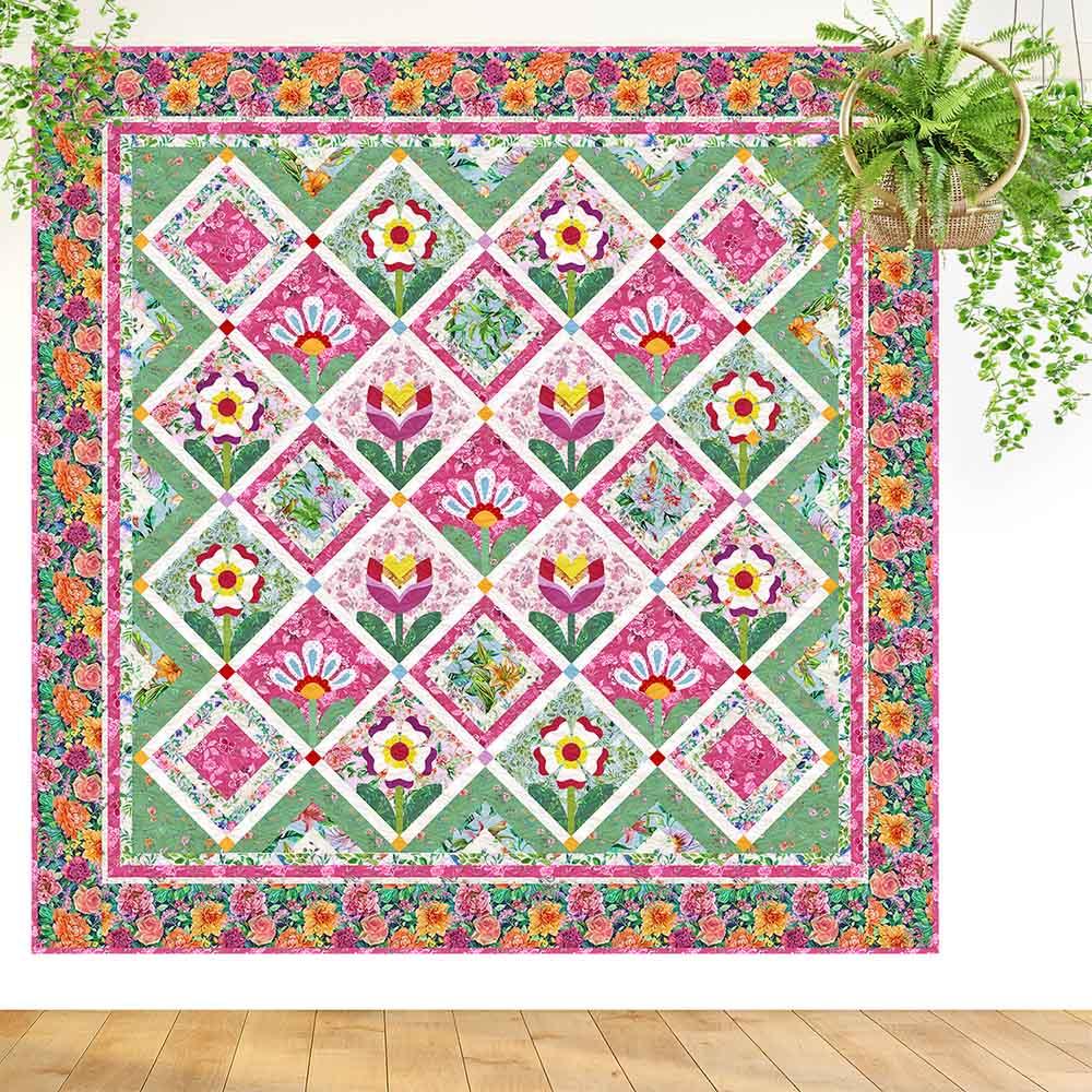 Framed flowers in on point blocks are featured in this project designed by Antonie Alexander of The Red Boot Quilt Co. The Tuileries Gardens Kit includes pattern with instructions for piecing and applique and all of the fabrics needed for the top and binding designed by Surface of Beauty for FreeSpirit Fabrics. Finished size is 77" x 77". Backing available separately, 5 yards x 44" wide recommended.