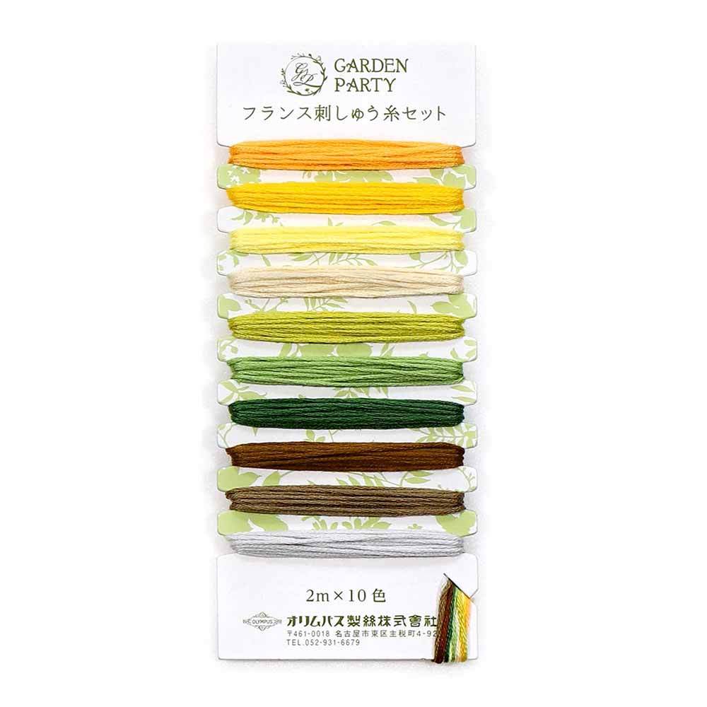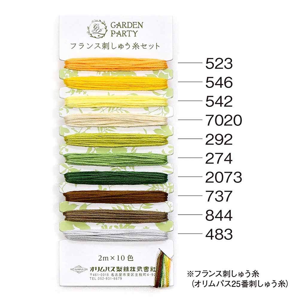 Includes 10 colors of Garden Party themed, assorted Olympus Cotton Embroidery floss No 25. Each color is 2-1/5 yards and separately wound on the same cardboard spool which is 2-1/2in x 5-1/2in. These embroidery threads are glossy and beautiful, and colors do not fade.