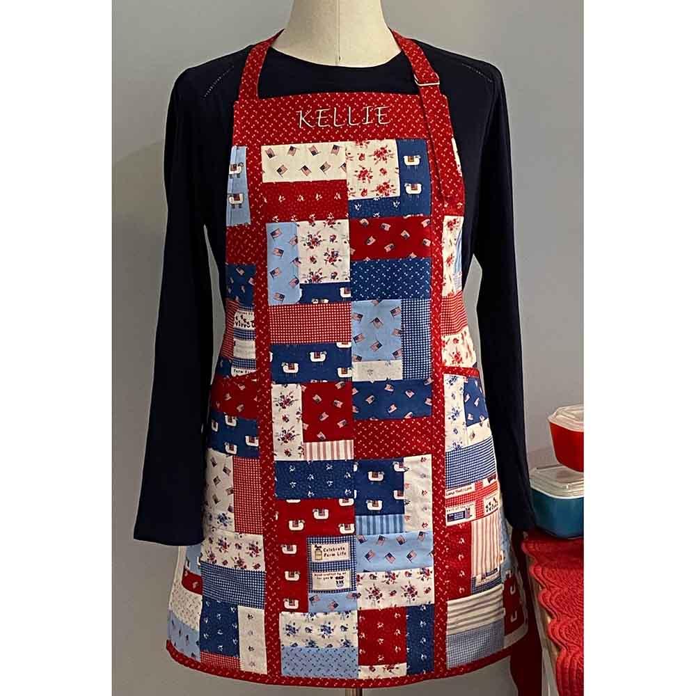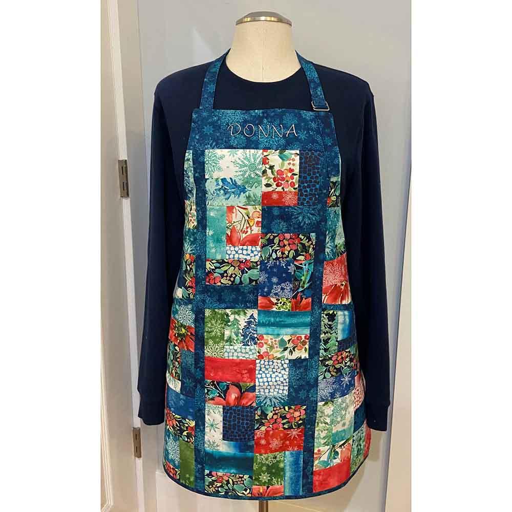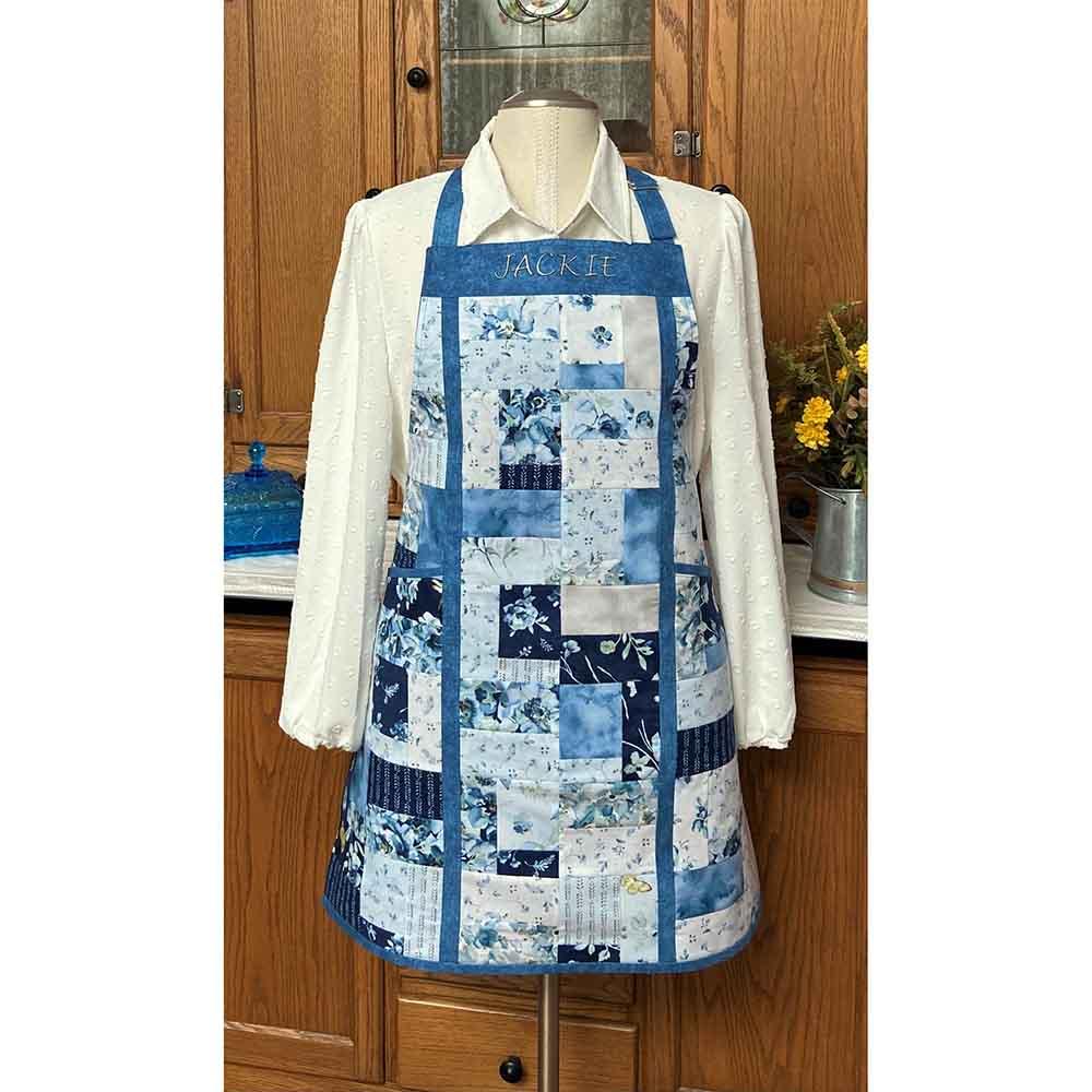 Stitch a one-of-a-kind apron using a Charm Pack. The unique charms and lining you choose will give you years of enjoyment. Embroider a name or logo on the name block using your home sewing machine prior to assembly. Fully lined with pockets.