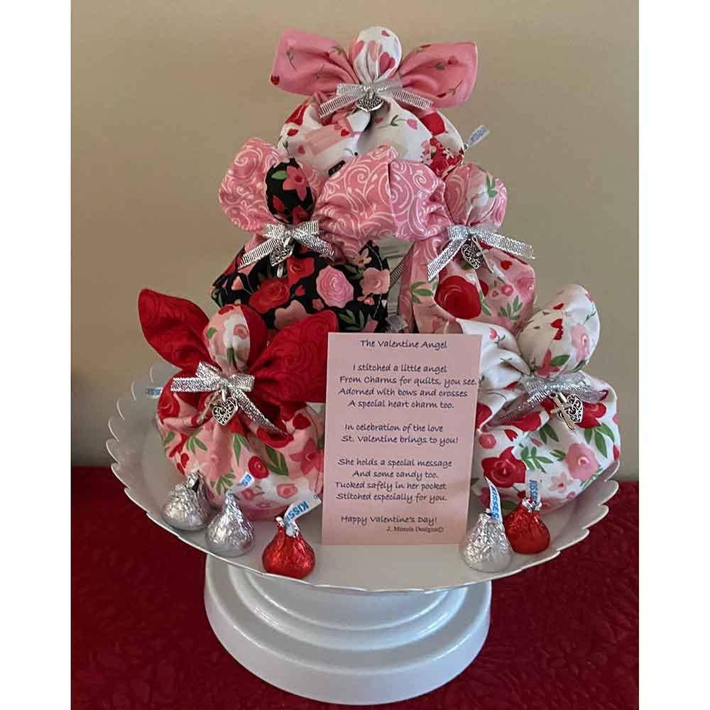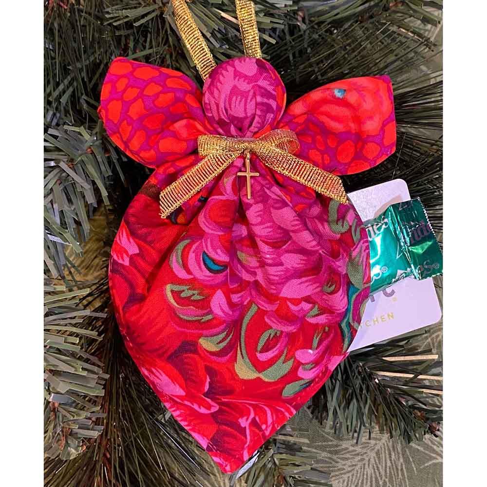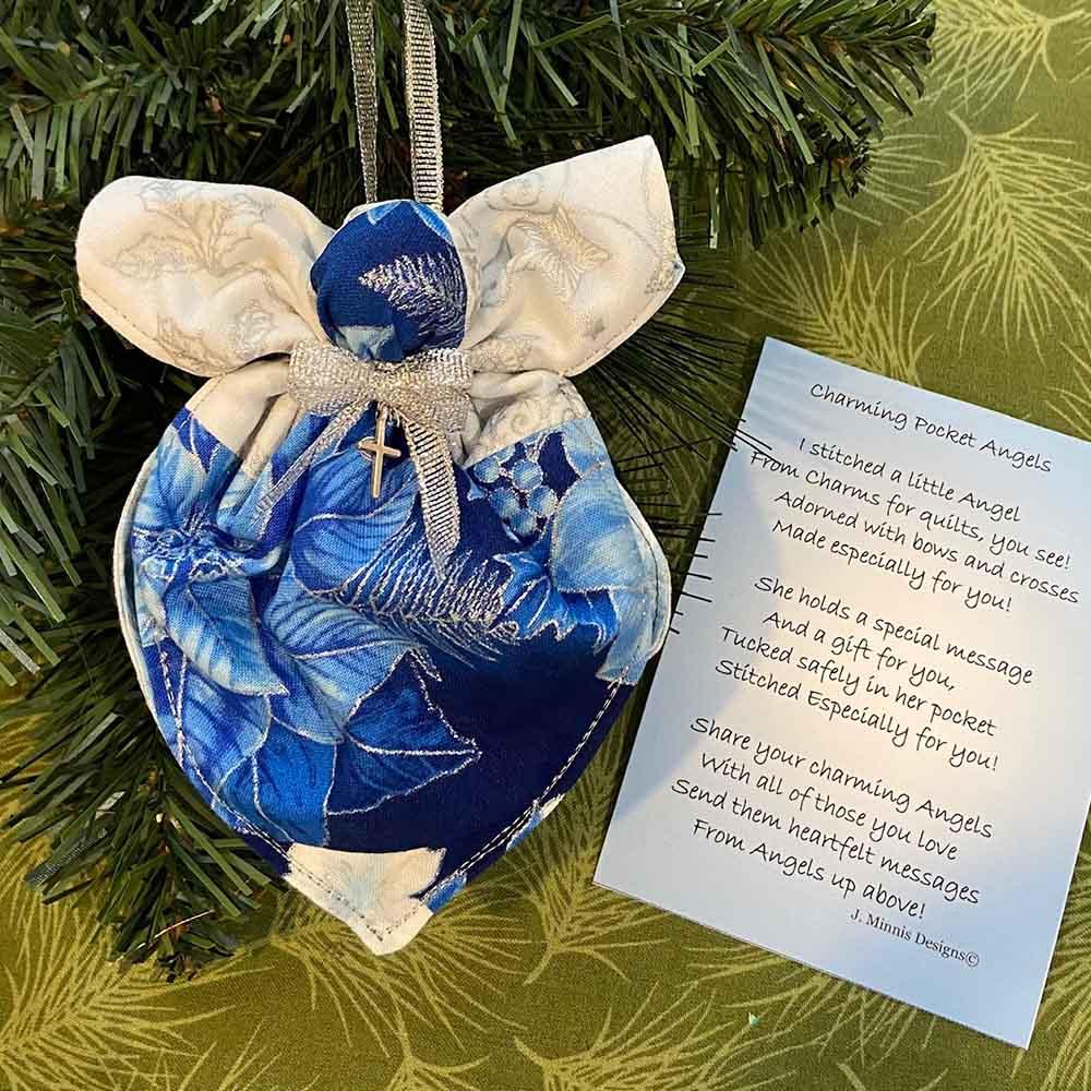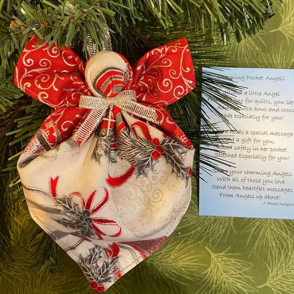 Grab a charm pack for this adorable ornament pattern. Makes 12 angels. Great for decorating your tree or presents. They have a little pocket for candy or gift cards, too. Cute for other occasions, too, like a baptism or first communion. Pattern includes a cute poem you can add to your angels.