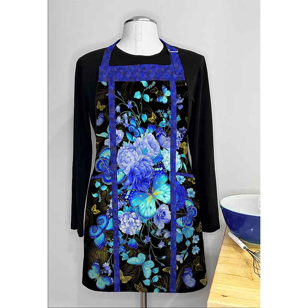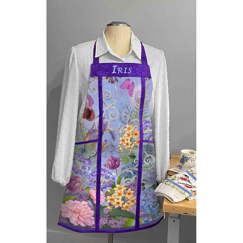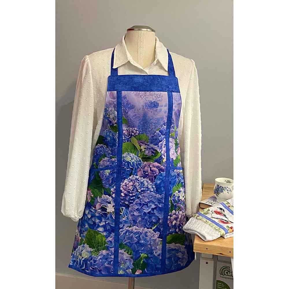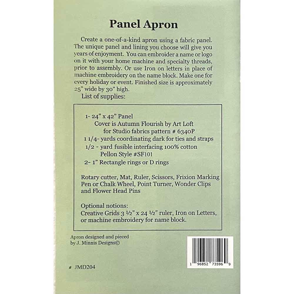 Create a one-of-a-kind apron using a fabric panel. The unique panel and lining you choose will give you years of enjoyment. Embroider a name or logo on it with your home sewing machine prior to assembly. Make one for every holiday or event. Apron is pieced and lined with pockets. Finished size approximately 25" wide by 30" high.