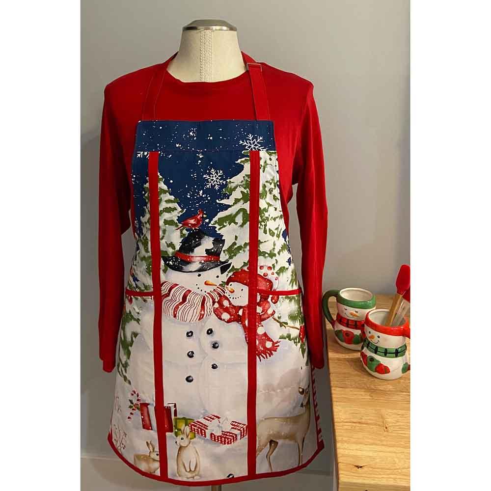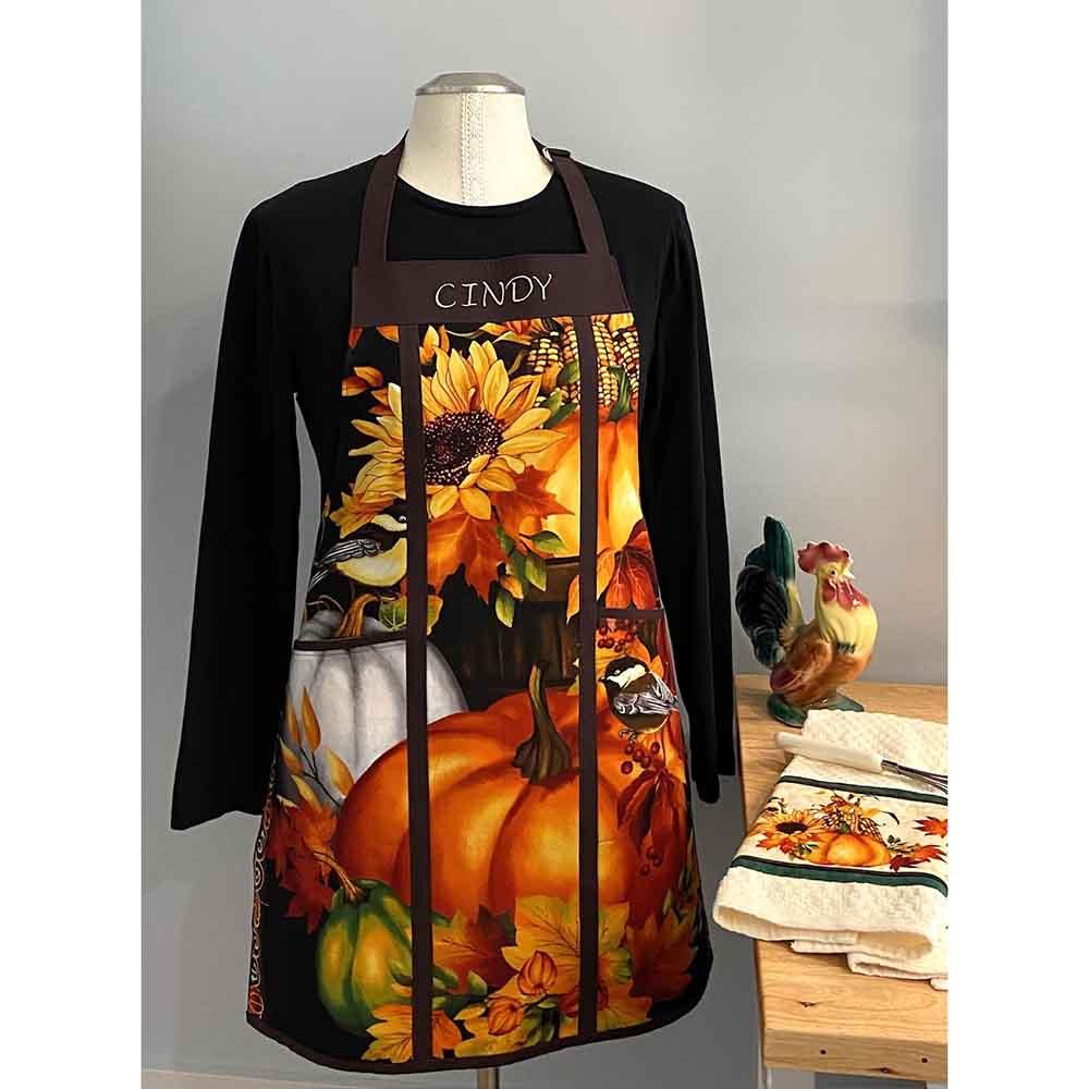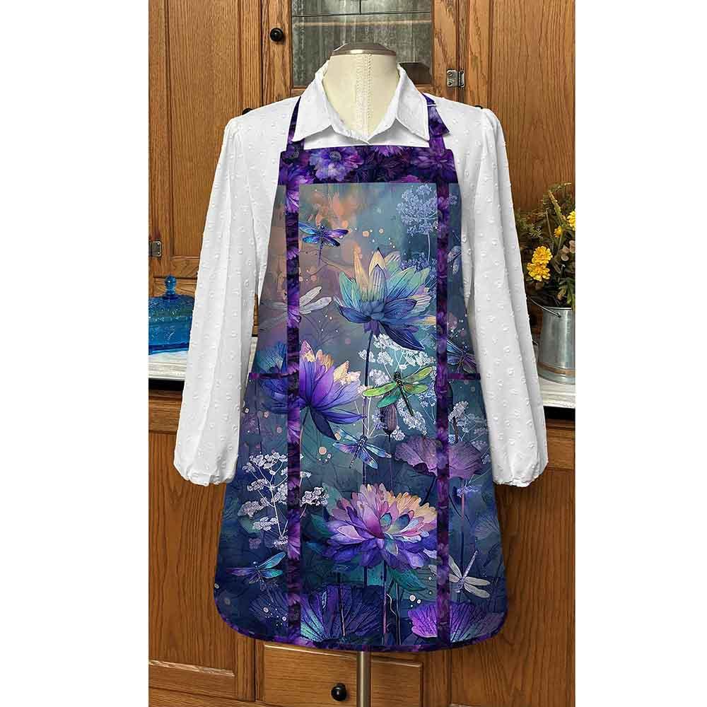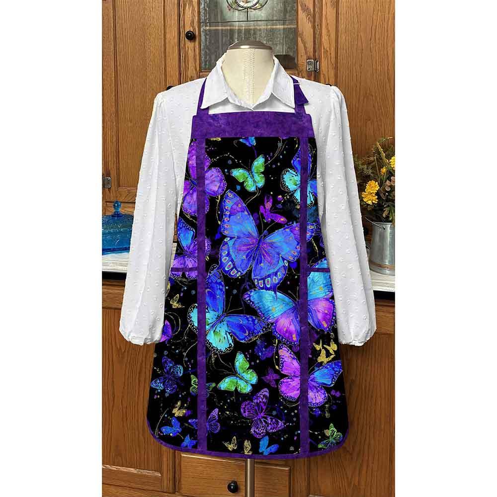 Create a one-of-a-kind apron using a fabric panel. The unique panel and lining you choose will give you years of enjoyment. Embroider a name or logo on it with your home sewing machine prior to assembly. Make one for every holiday or event. Apron is pieced and lined with pockets. Finished size approximately 25" wide by 30" high.