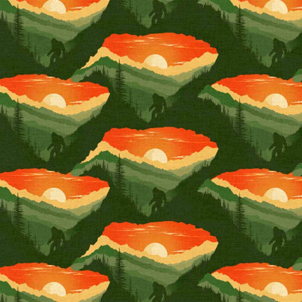 Jim Baldwin has captured the true vibes of the one and only Bigfoot. Get inspired by the digitally printed Legendary Loner collection for 3 Wishes Fabric.