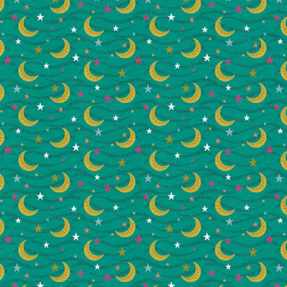 3 Wishes Fabric - Living Wild by Lisa Perry - Stars And Moons - Turquoise - Yardage