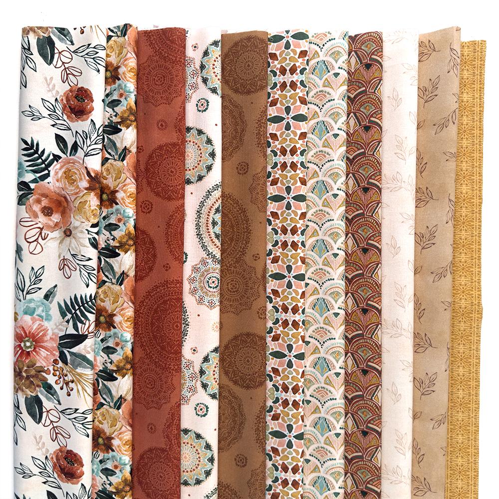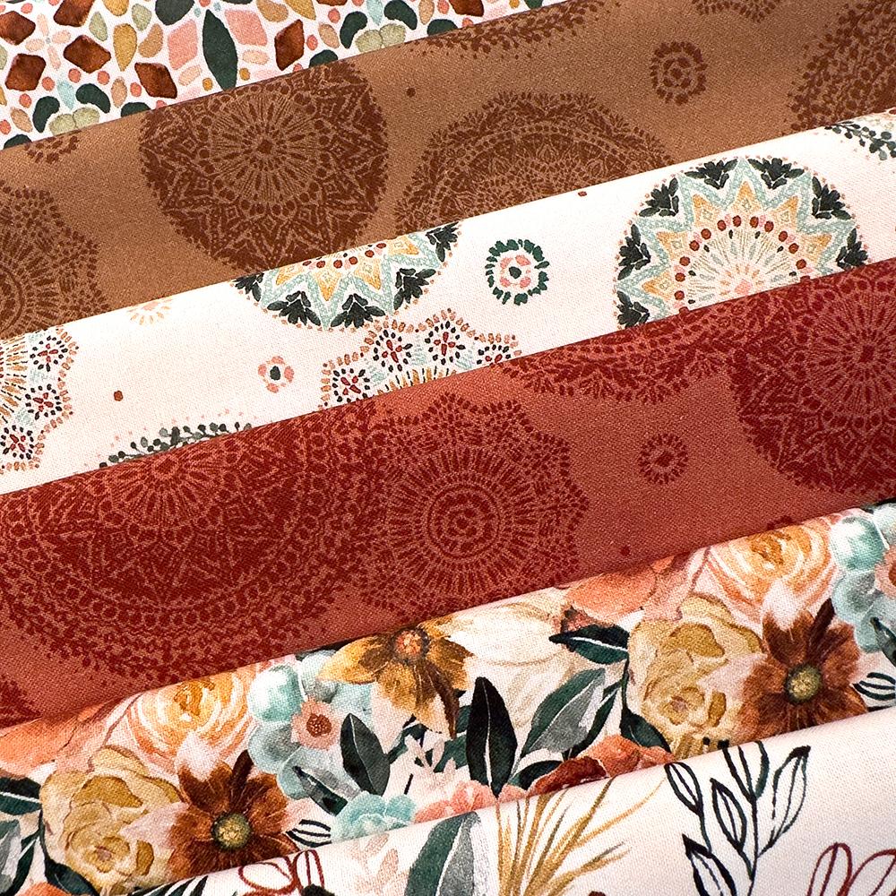 The Floral Chic collection by Dina June for P&B Textiles features beautiful floral and mandala‑inspired prints in soft yet rich colors. These 100% cotton fabrics bring timeless charm to quilts, accessories, and home décor projects with their elegant blooms and tonal motifs. This fat quarter bundle includes 11 pieces cut at 18" x 21".