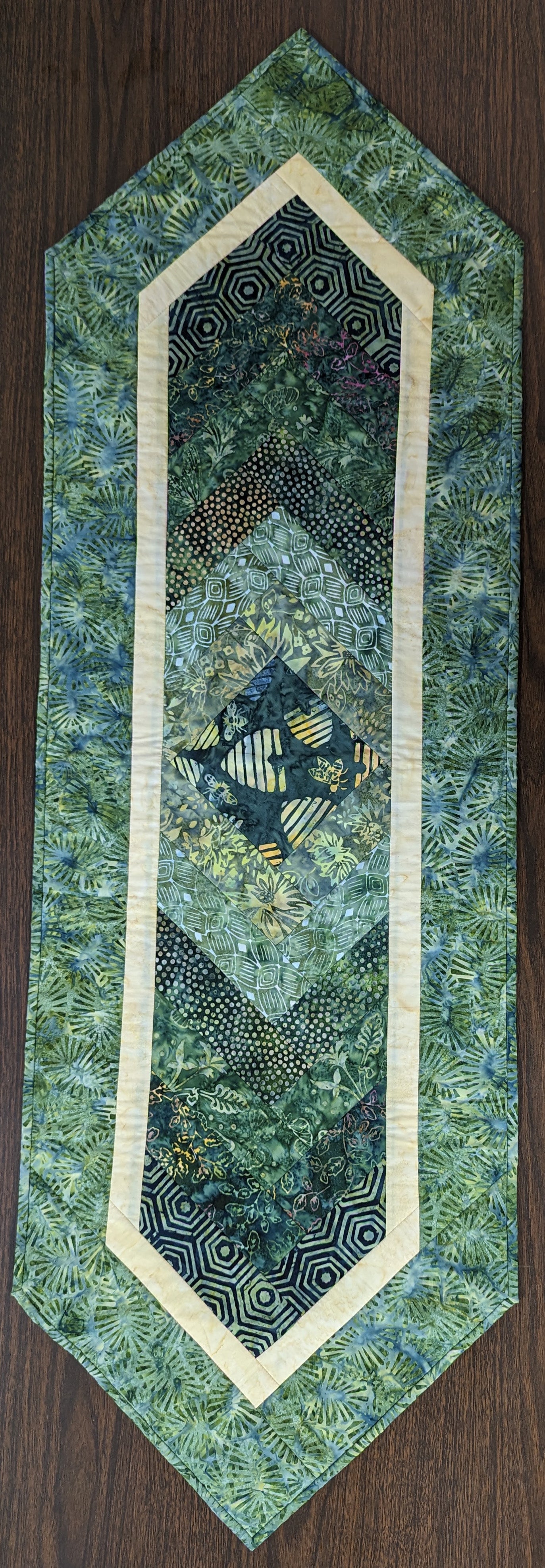 Make a great looking table runner which is sewn with a "quilt as you go" method, so after piecing the quilt there is only binding and you are done! You will leave this 5 hour class with a finished 17" x 52" beautiful table runner!