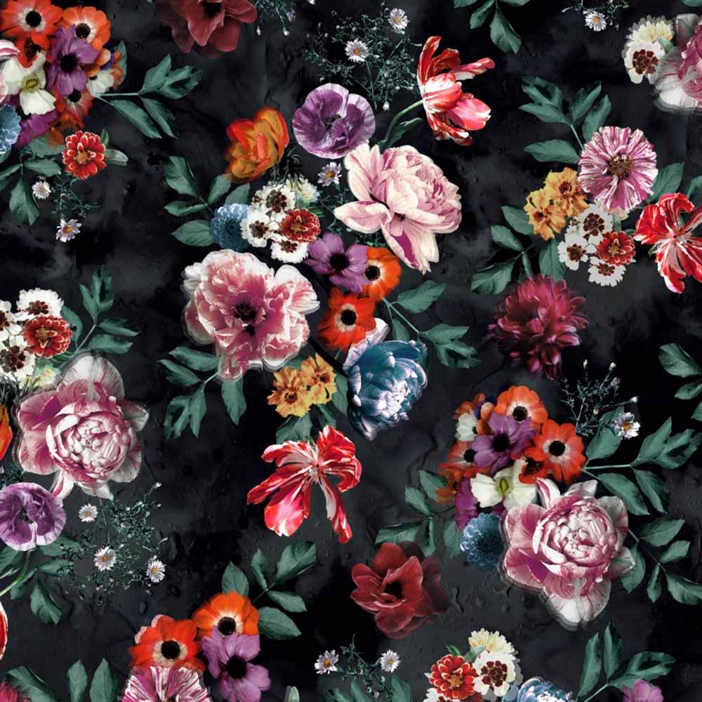 P&B Fabrics - Moon Flower - Vibrant Floral - Black - Yardage