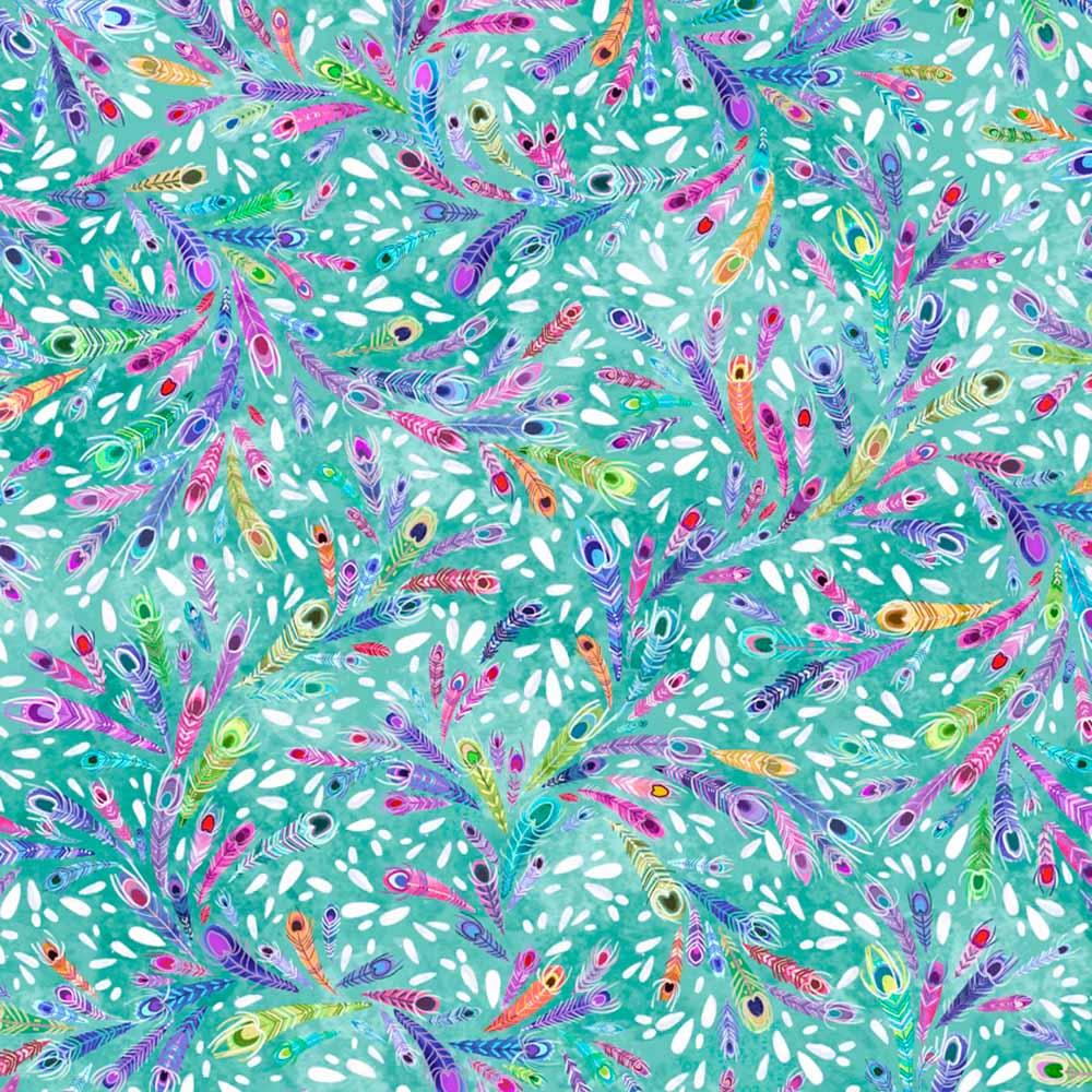 P&B Textiles - Peacock Serenade By Eulalia Mejia - Flowing Feathers - Teal - Yardage